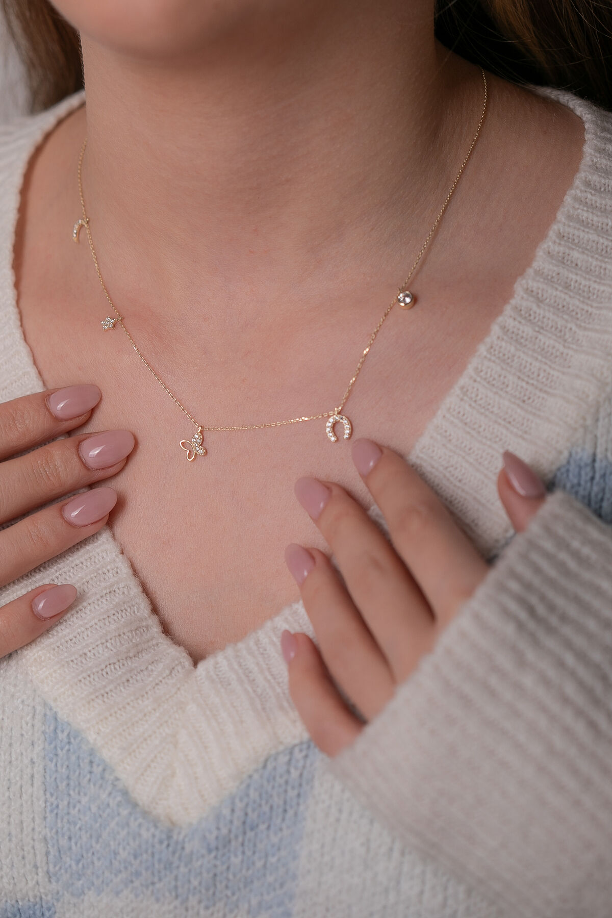 Kolyecik 14 Ayar Altın Kalp Şans Kolye