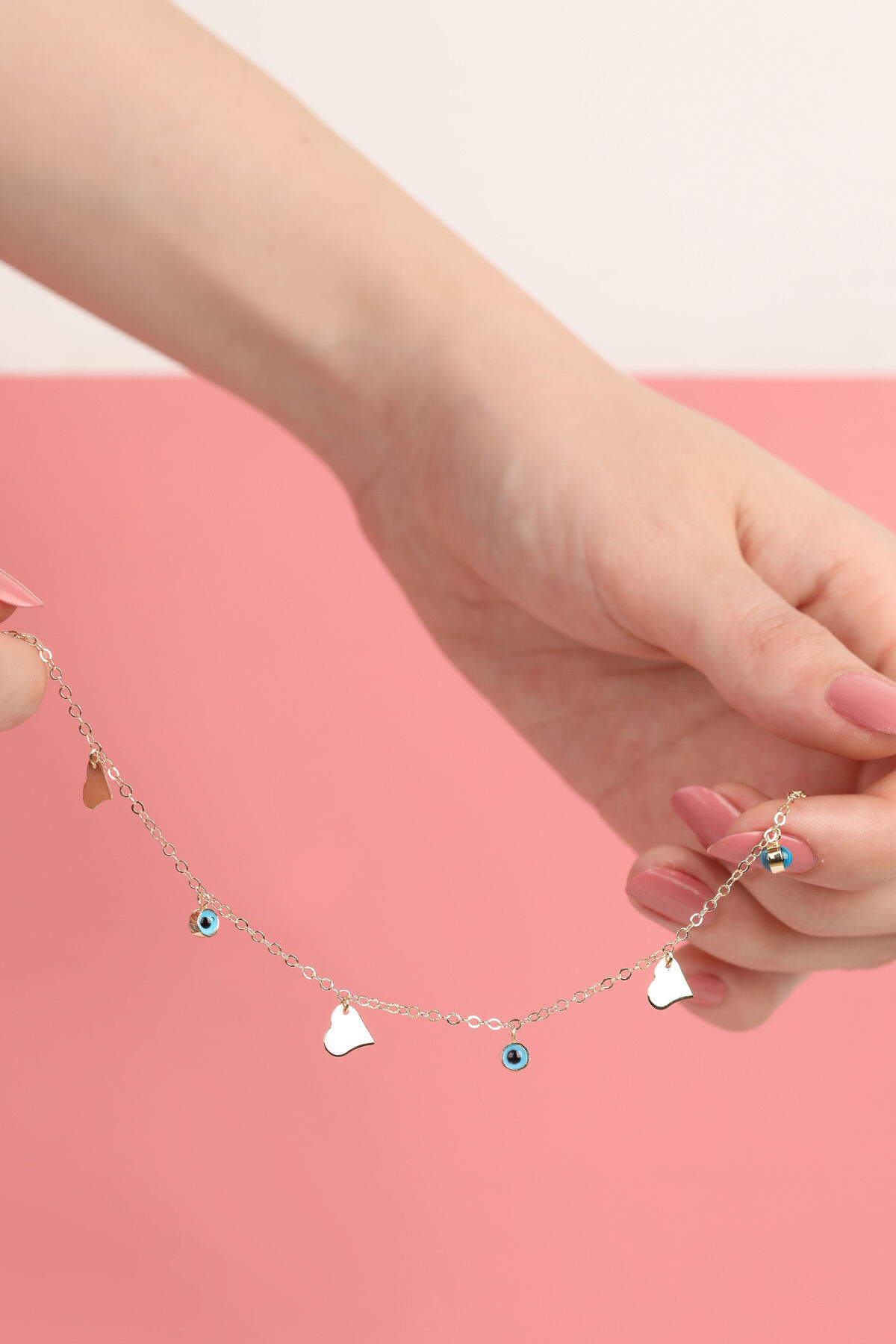Kolyecik 14 Ayar Altın Kalp Ve Gözlü Halhal