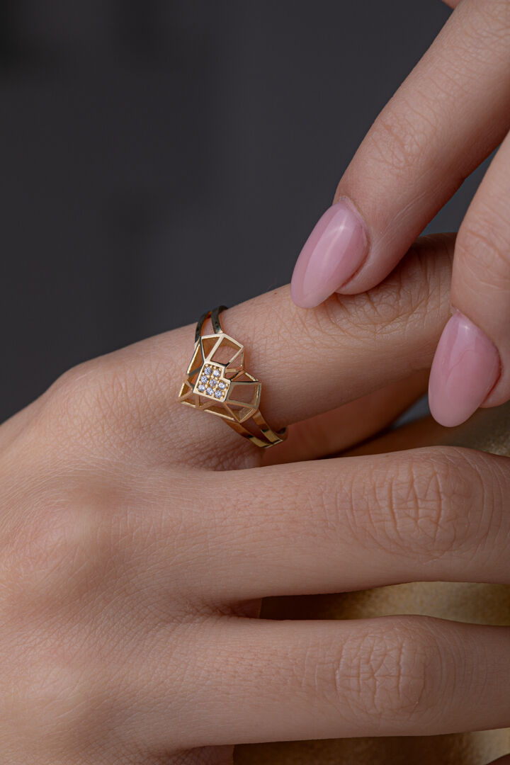 Aşkın ve zarafetin simgesi… Bu 14 ayar altın kalp yüzük, sıcak altın tonu ve zarif kalp formuyla stilinize sofistike bir dokunuş katıyor. 1,70 gramlık dengeli yapısı parmakta konforlu bir duruş sağlarken, kalp motifi her açıdan zarif ve dikkat çekici bir görünüm sunar. Kalp sevgiyi, bağlılığı ve romantizmi simgelerken, usta el işçiliği ile hazırlanmış detaylar tasarıma modern bir zarafet kazandırır. Günlük kullanımda sade ve zarif bir tamamlayıcı, özel anlarda ise göz alıcı bir aksesuar olarak öne çıkar. Ürüne özel sertifikasıyla güvenle sunulan bu yüzük, sevdiklerinize anlam dolu bir armağan veya kendinize romantik ve şık bir ışıltı olarak mükemmel bir tercihtir. Siparişiniz 2 iş günü içinde özenle kargoya verilir.