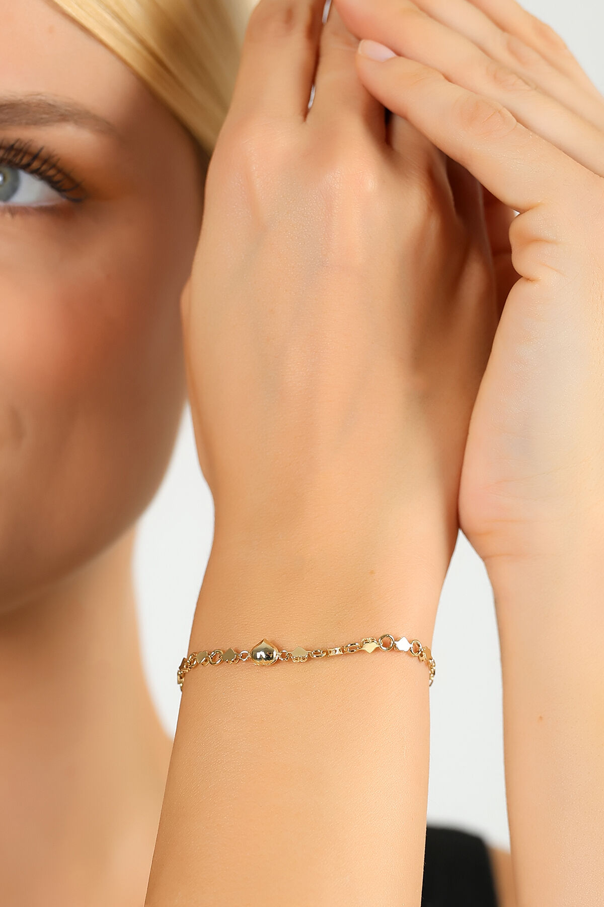 Kolyecik 14 Ayar Altın Kalpli Aynalı Bileklik