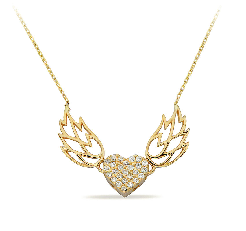 Kolyecik 14 Ayar Altın Kanatli Kalp Kolye