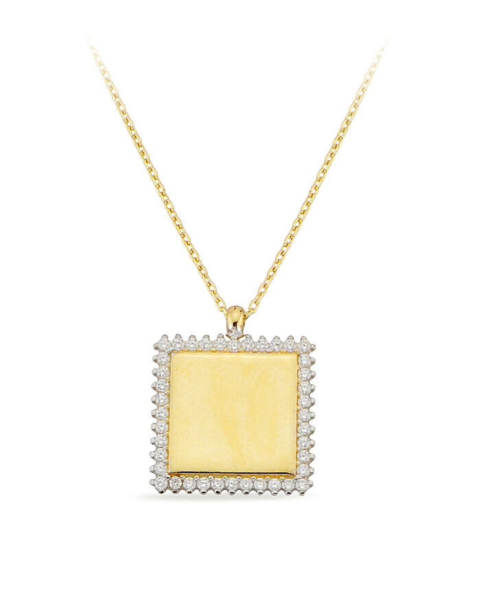 Kolyecik 14 Ayar Altın Kare Plaka Kolye