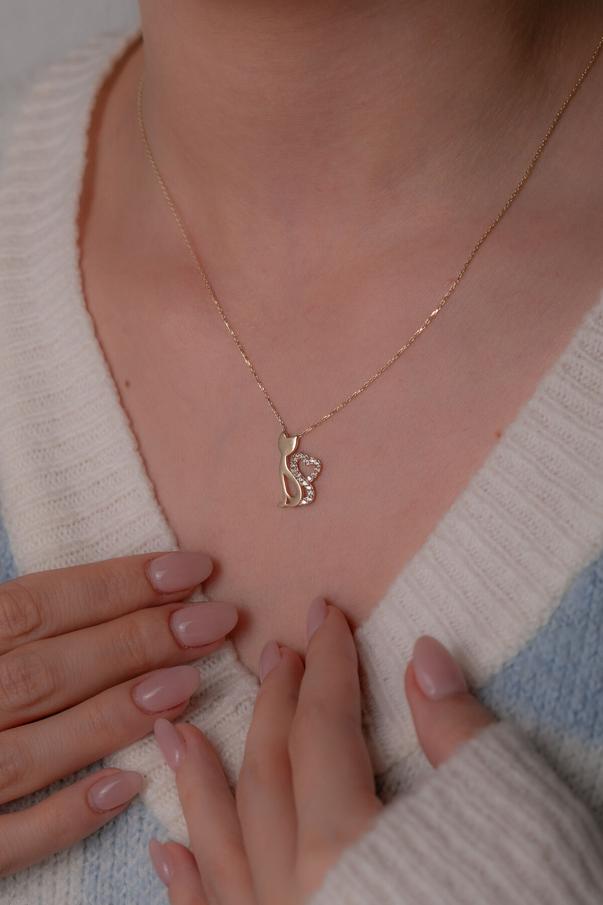 Kolyecik in zarif 14 Ayar Kedi Kolye si, şıklığı ve hayvan sevgisini bir araya getiren eşsiz bir parça olarak karşınıza çıkıyor. 1,82 gram ağırlığındaki kolyemiz minimalist ve modern tasarımı, her yaşta kediseverin çağdaş stilini tamamlayacak şekilde tasarlandı. 42 cm uzunluğundaki zinciriyle boyunda hafif bir dokunuş bırakırken, kedi figürü ise dostunuza olan bağlılığınızı simgeliyor. Bu özel kolye, günlük kullanımda veya özel anlarda fark yaratmak isteyenler için mükemmel bir tercih. Kendi stilinize zarafet katarken, sevdiklerinize de hediye edebileceğiniz anlam dolu bir seçim. Ürün, ayar ve gramaj bilgilerini içeren sertifikasıyla birlikte sunulmaktadır. Kolyecik’te tüm siparişler standart olarak sigortalı kargo ile gönderilir. Ürünlerde ±%5 gramaj değişkenliği bulunmaktadır. Kolyecik ile şıklığınızı tamamlayın!