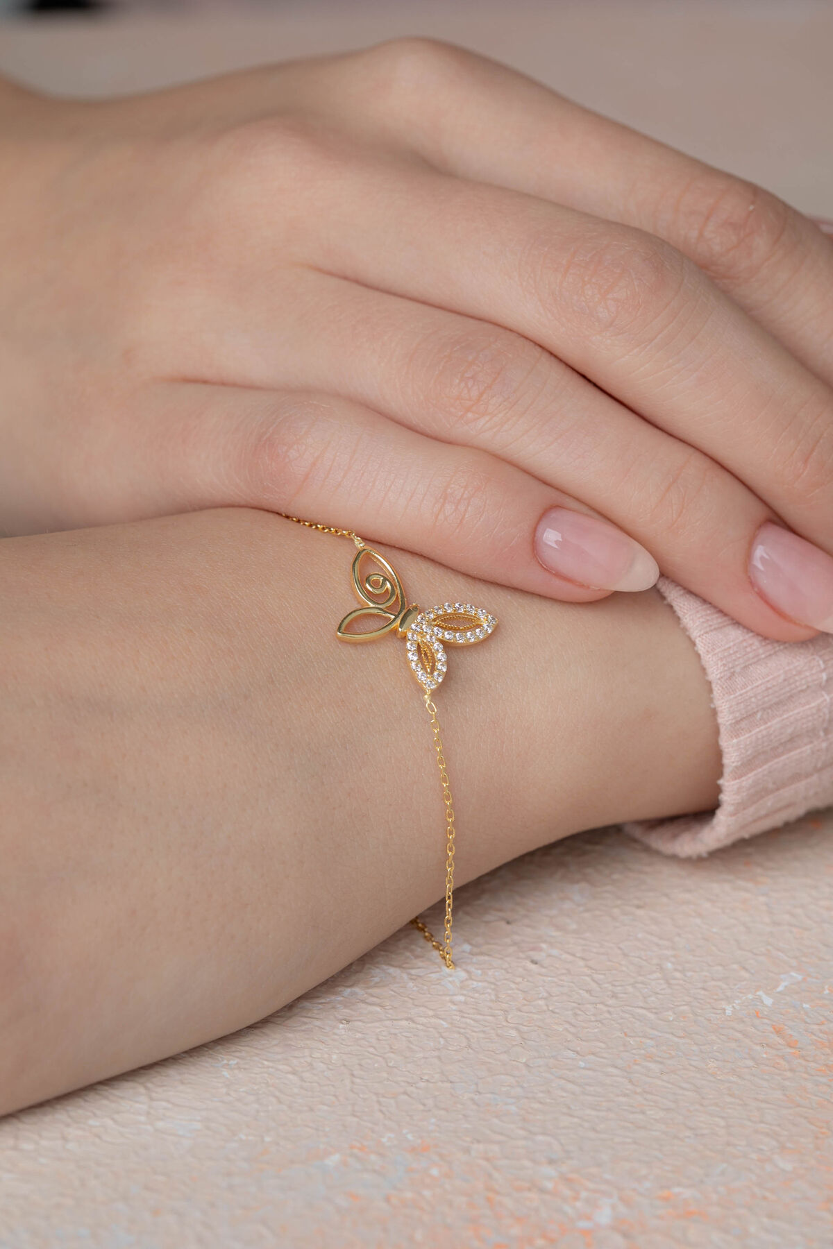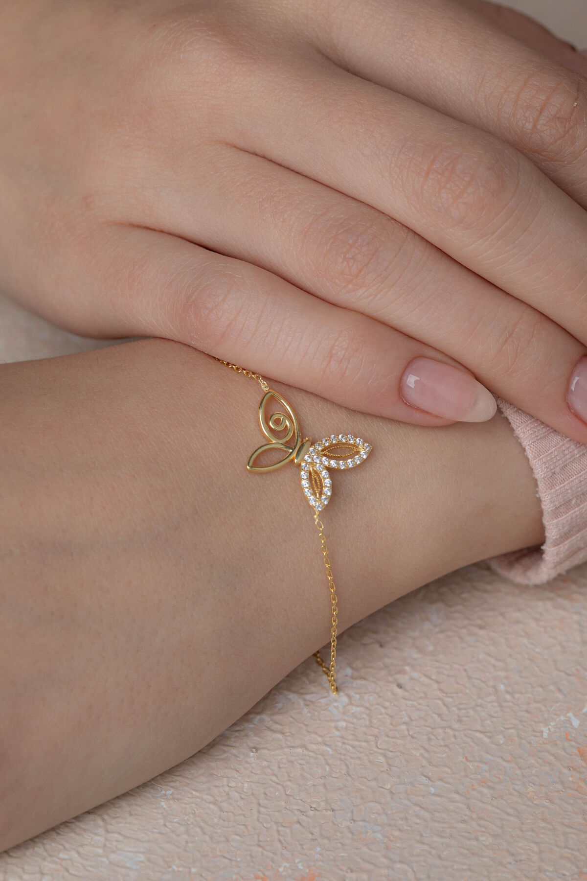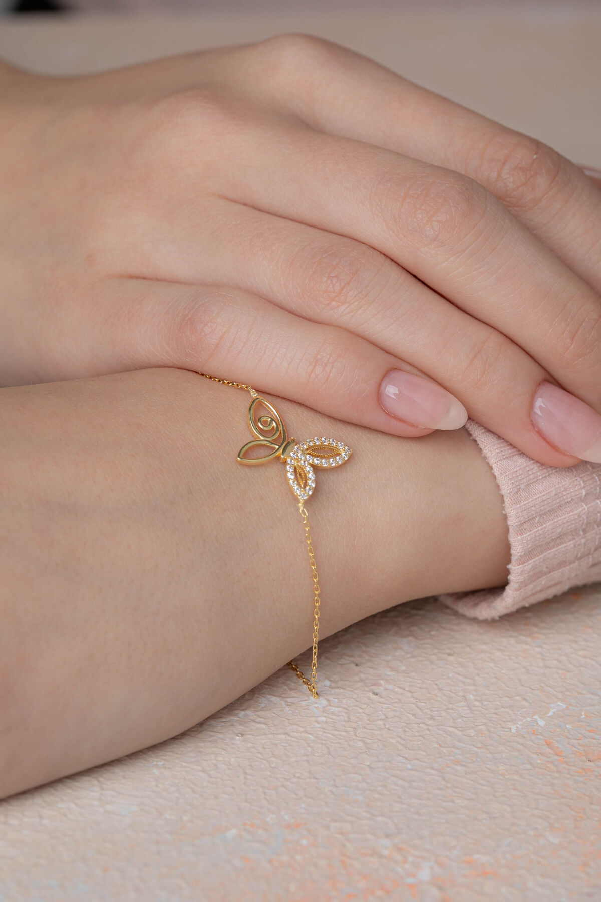 Kolyecik 14 Ayar Altın Kelebek Bileklik