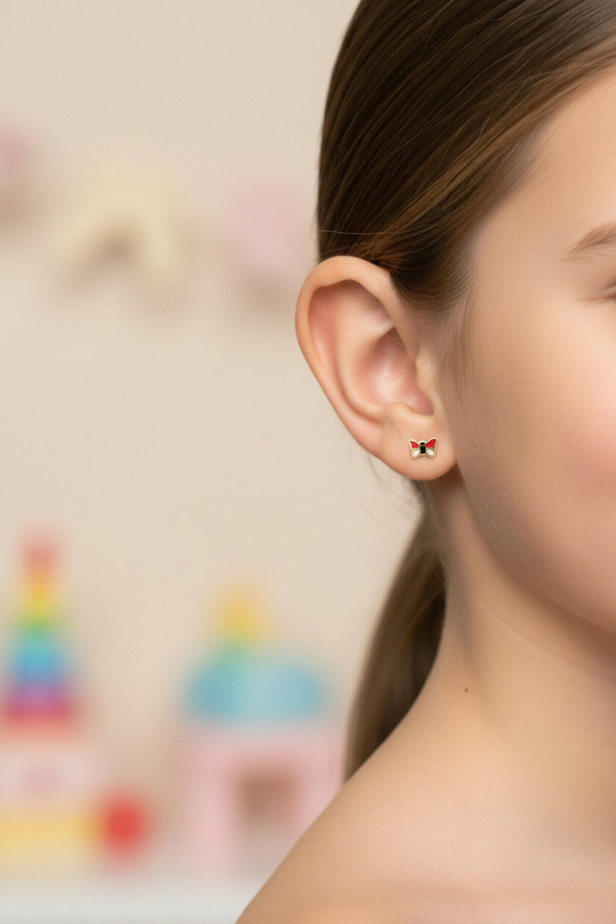 Kolyecik 14 Ayar Altın Kelebek Çocuk Küpe