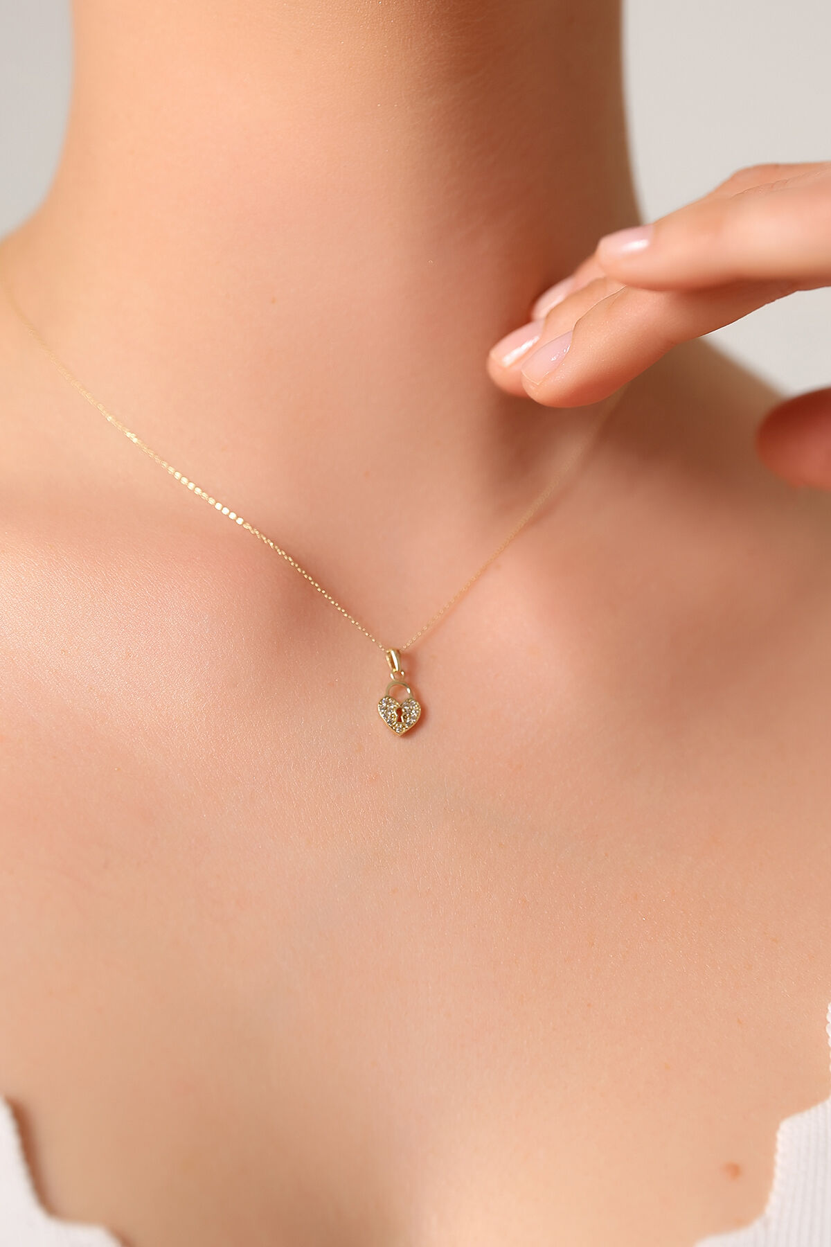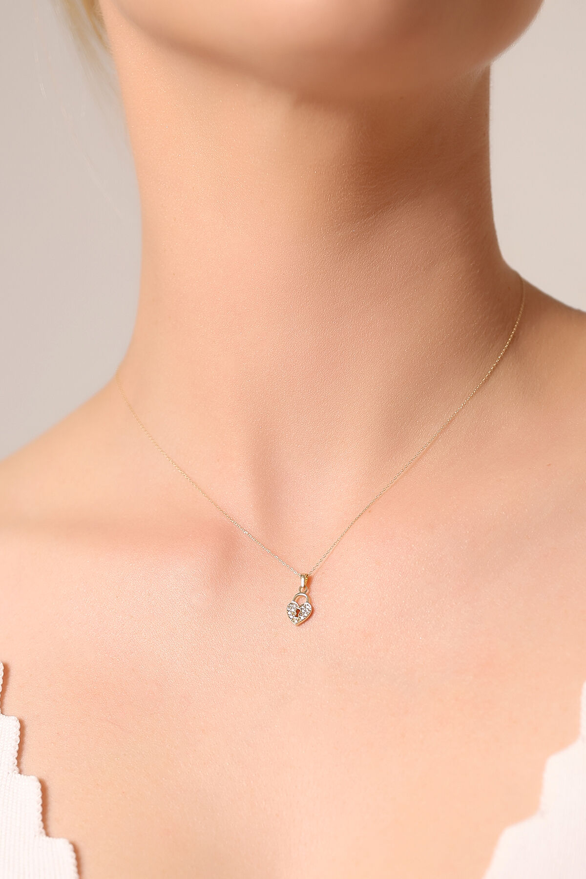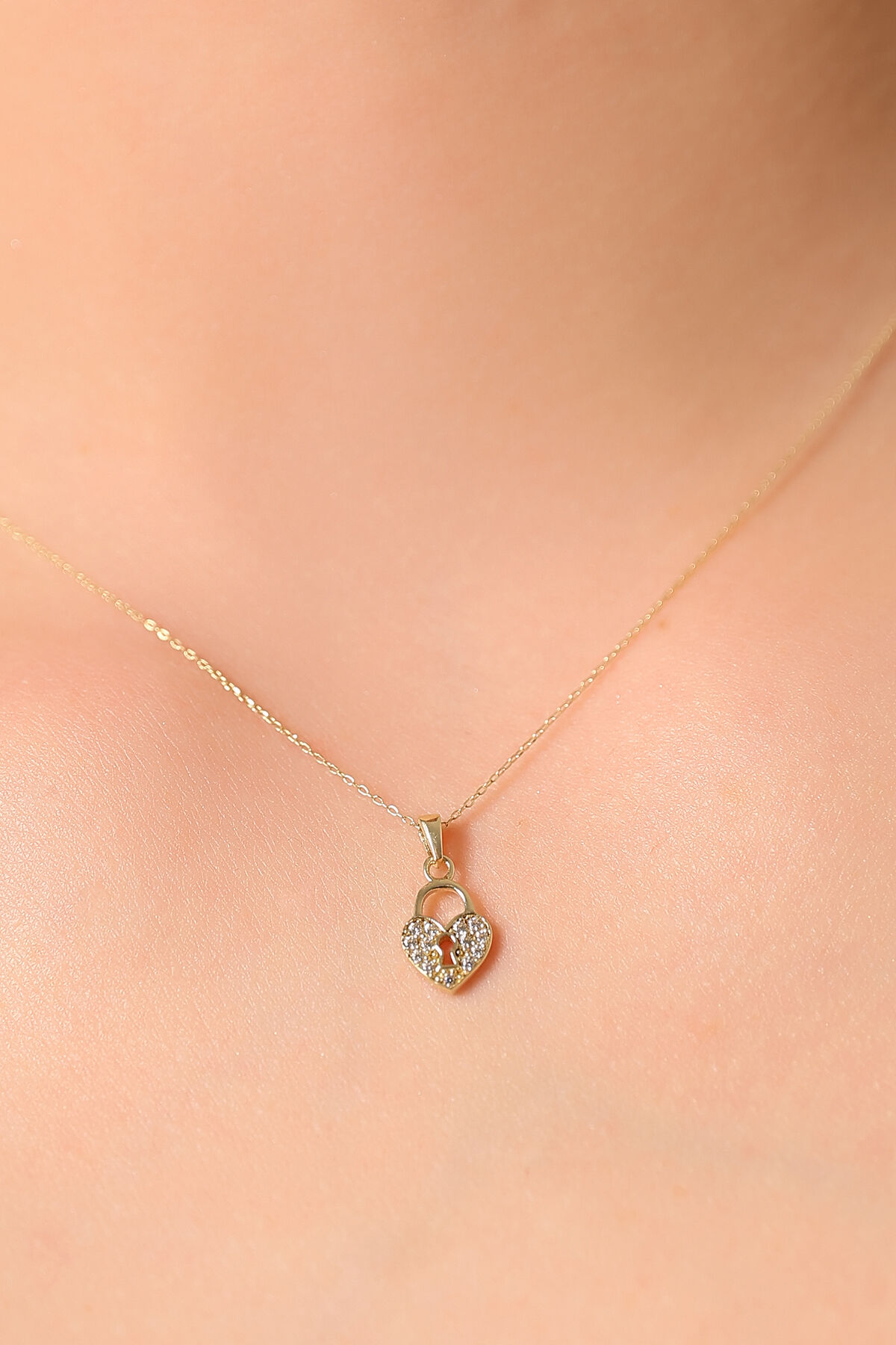 Kolyecik 14 Ayar Altın Kilit Kalp Kolye