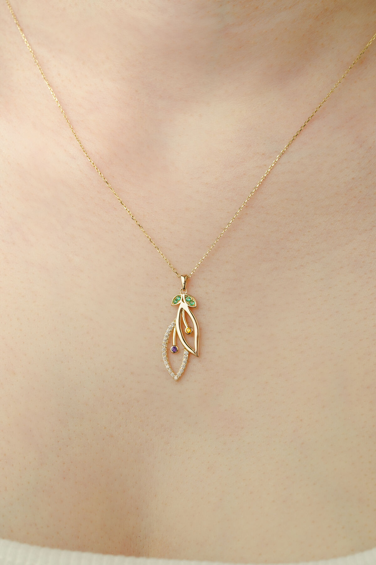 Kolyecik güvencesiyle sunulan 14 Ayar Altın Kiraz Yaprağı Kolye, 2,50 gram ağırlığıyla zarafeti ve doğanın tazeliğini bir araya getiriyor. Kiraz yaprağı figürü, canlılık, yenilenme ve pozitif enerjiyi simgeler. Altının sıcak ışıltısı ile birleşen zarif tasarım, boynunuzda anlamlı ve göz alıcı bir parlaklık oluşturur. Minimal ve şık formu sayesinde hem günlük kombinlerde hem de özel günlerde zarif bir tamamlayıcıdır. %100 el yapımı olarak ustalarımızın titiz işçiliğiyle hazırlanmıştır. Her kolye, el emeğinin kazandırdığı benzersiz detaylarla kendine özgü bir karakter taşır. 42 cm uzunluğundaki zarif zinciriyle sade ama etkileyici bir duruş sağlar. Üretim sürecindeki hassasiyet nedeniyle gramajda ±%5 oranında küçük farklılıklar görülebilir. Ürün, orijinalliğini belgeleyen özel sertifikasıyla birlikte güvenle gönderilir. 2 iş günü içinde kargoya teslim edilir ve sigortalı şekilde size ulaştırılır. Zarif ve anlamlı tasarımıyla bu kiraz yaprağı kolye, doğanın ve zarafetin ışıltılı sembolüdür.