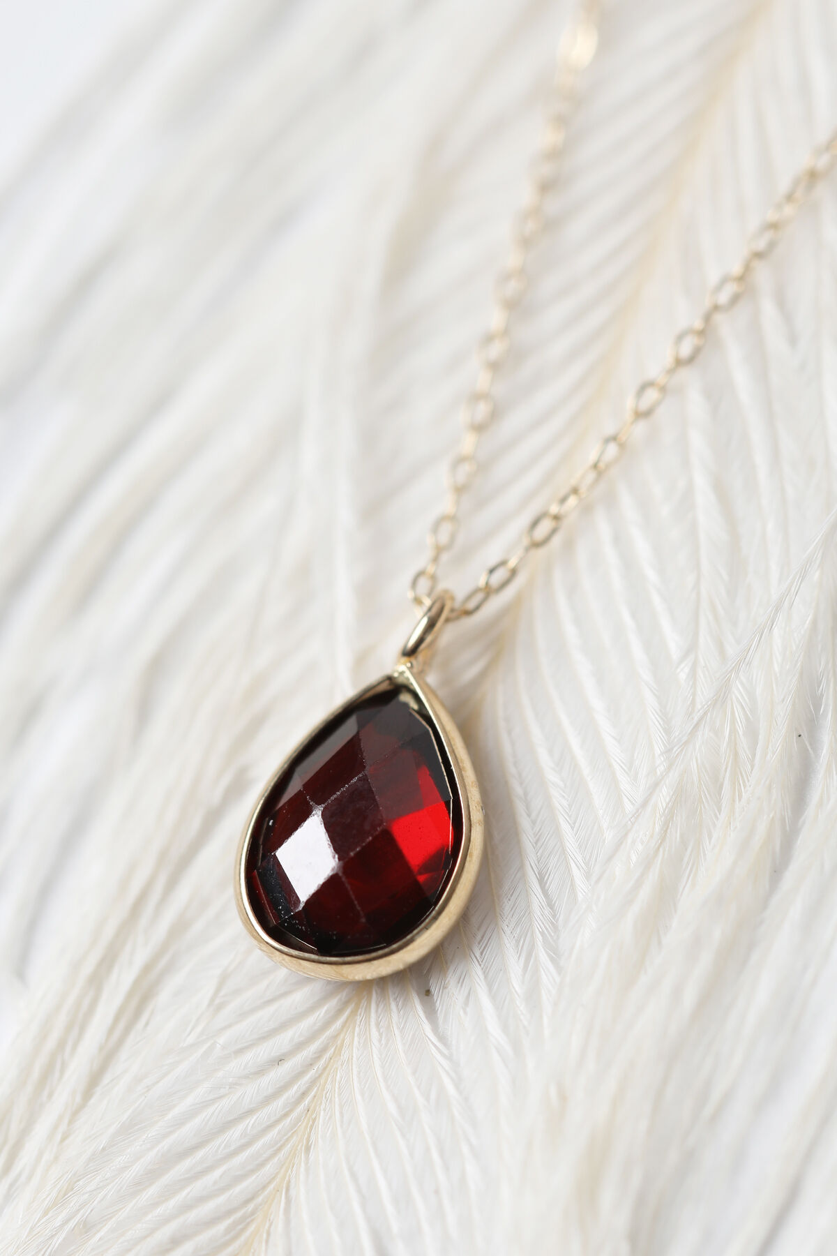 Kolyecik 14 Ayar Altın Kırmızı Damla Taş Kolye