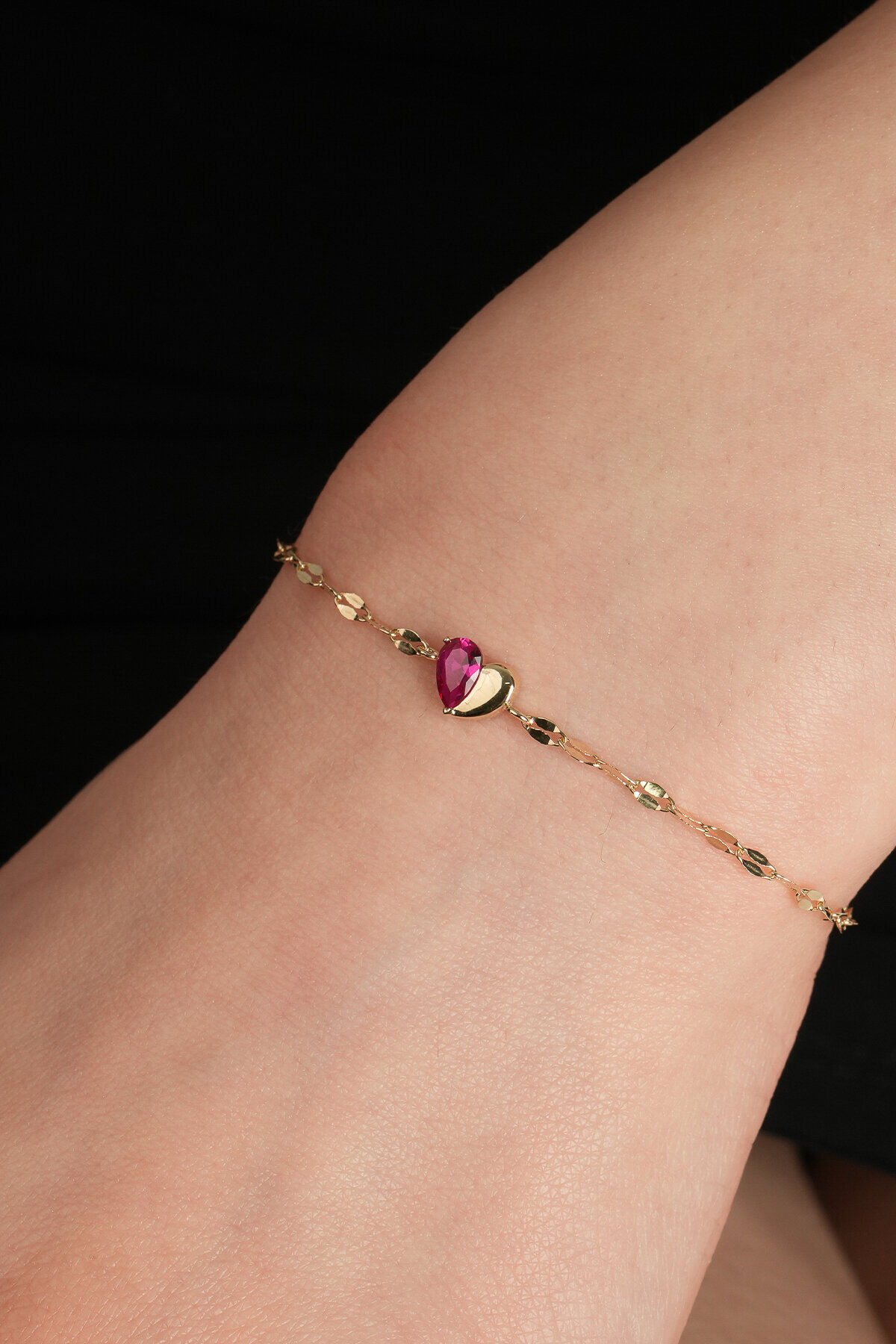 Kolyecik 14 Ayar Altın Kırmızı Kalp Bileklik
