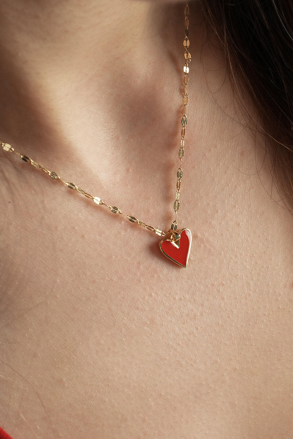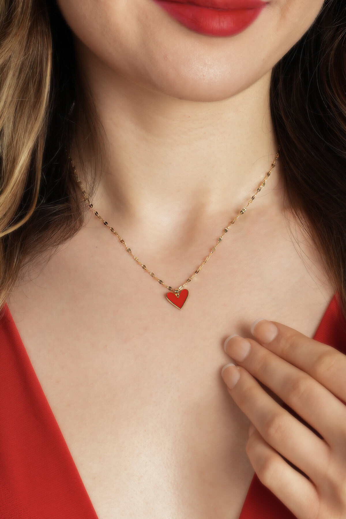 Kolyecik 14 Ayar Altın Kırmızı Kalp Kolye