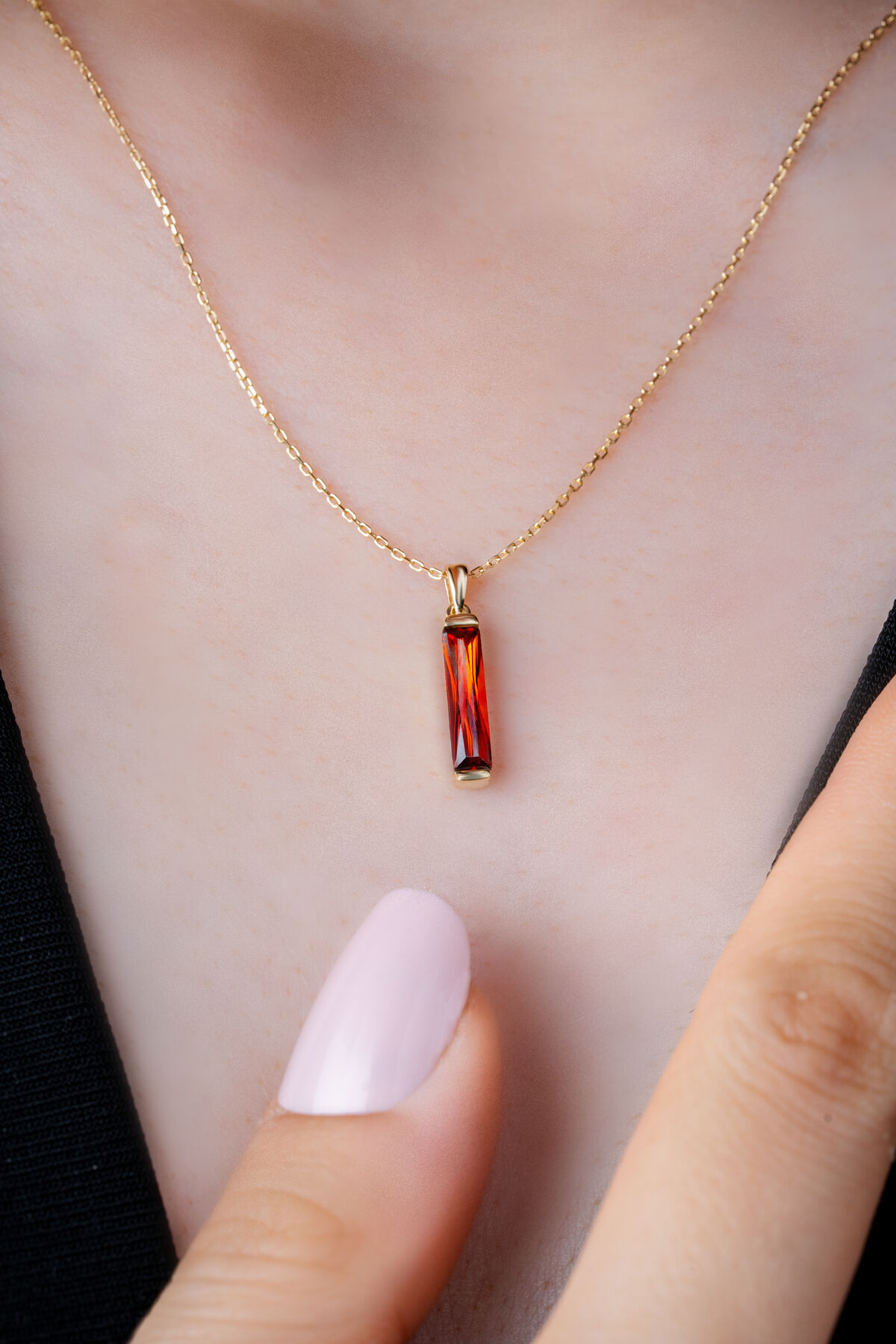 Kolyecik 14 Ayar Altın Kırmızı Taş Çubuk Kolye