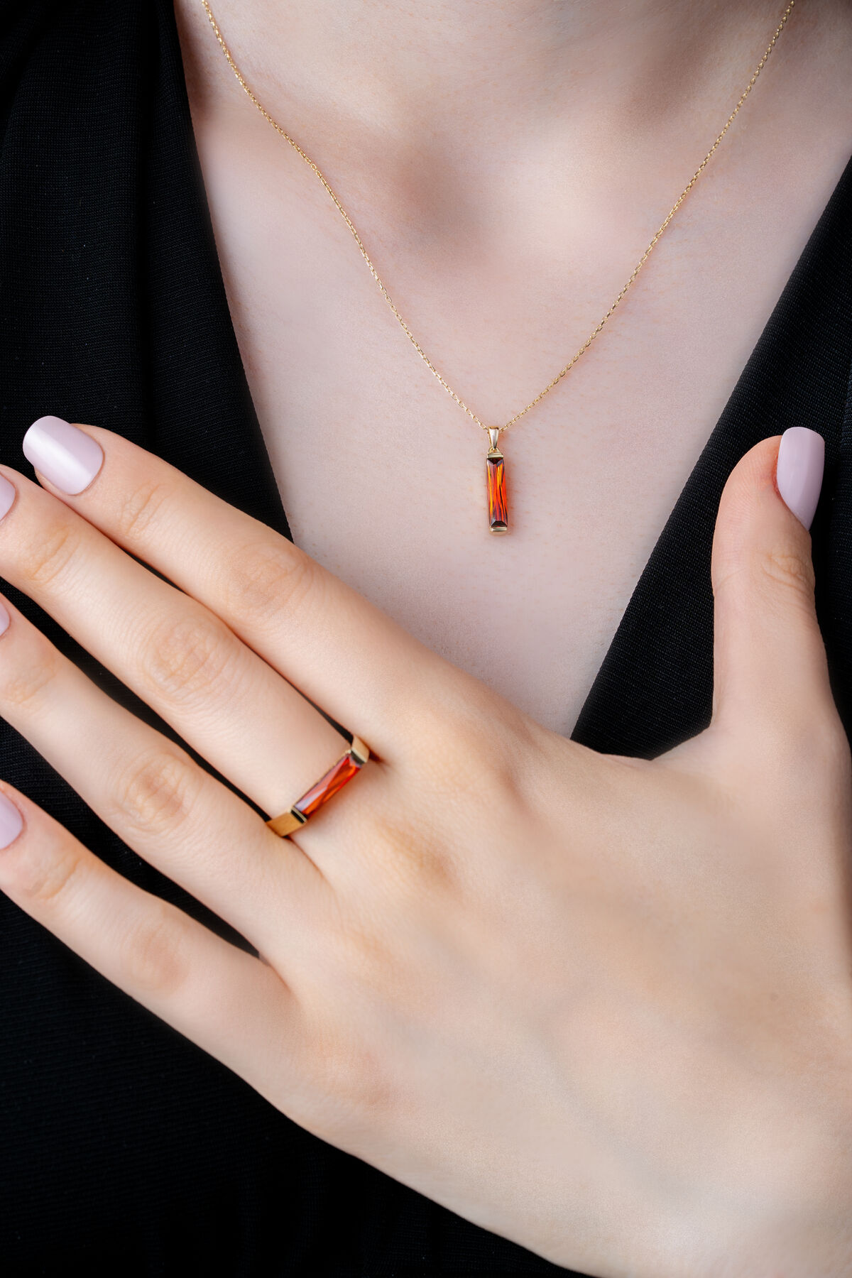 Kolyecik güvencesiyle sunulan 14 Ayar Altın Kırmızı Taş Kolye, 1,88 gram ağırlığıyla zarafeti ve romantizmi bir araya getiriyor. Kırmızı taşın tutkulu parlaklığı, altının sıcak tonuyla birleşerek etkileyici bir şıklık sunar. Minimal formu ve zarif detayıyla boynunuzda dikkat çekici bir ışıltı oluşturur. %100 el yapımı olarak ustalarımızın titiz işçiliğiyle hazırlanmıştır. Her bir kolye, el emeğinin kazandırdığı benzersiz detaylarla kendine özgü bir karakter taşır. 42 cm uzunluğundaki zarif zinciriyle hem günlük kullanıma hem de özel günlere mükemmel şekilde uyum sağlar. Altın ve kırmızı taşın uyumu, sofistike ve romantik bir görünüm sunar. Üretim sürecindeki hassasiyet nedeniyle gramajda ±%5 oranında küçük farklılıklar görülebilir. Ürün, orijinalliğini belgeleyen özel sertifikasıyla birlikte güvenle gönderilir. 2 iş günü içinde kargoya teslim edilir ve sigortalı şekilde size ulaştırılır.