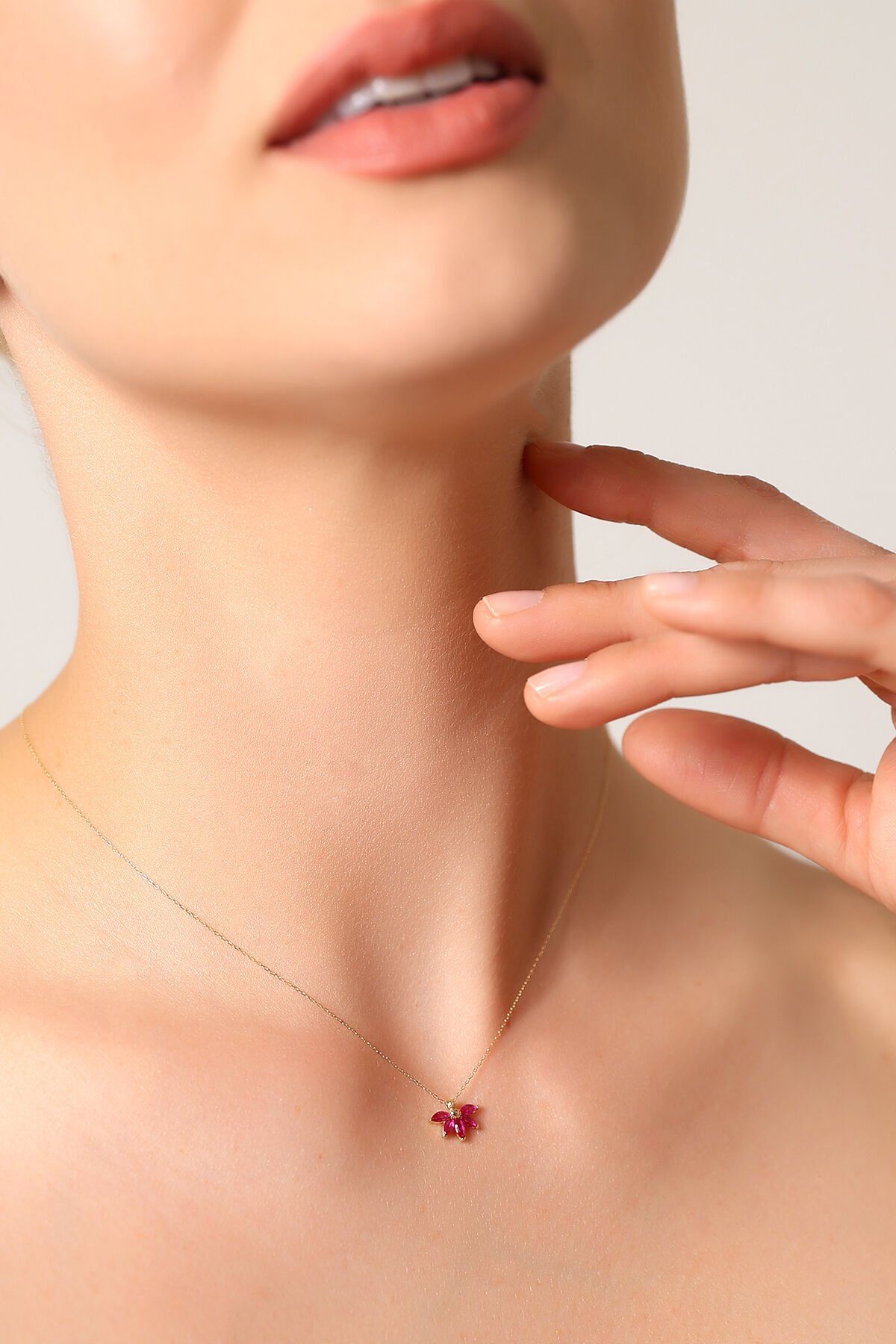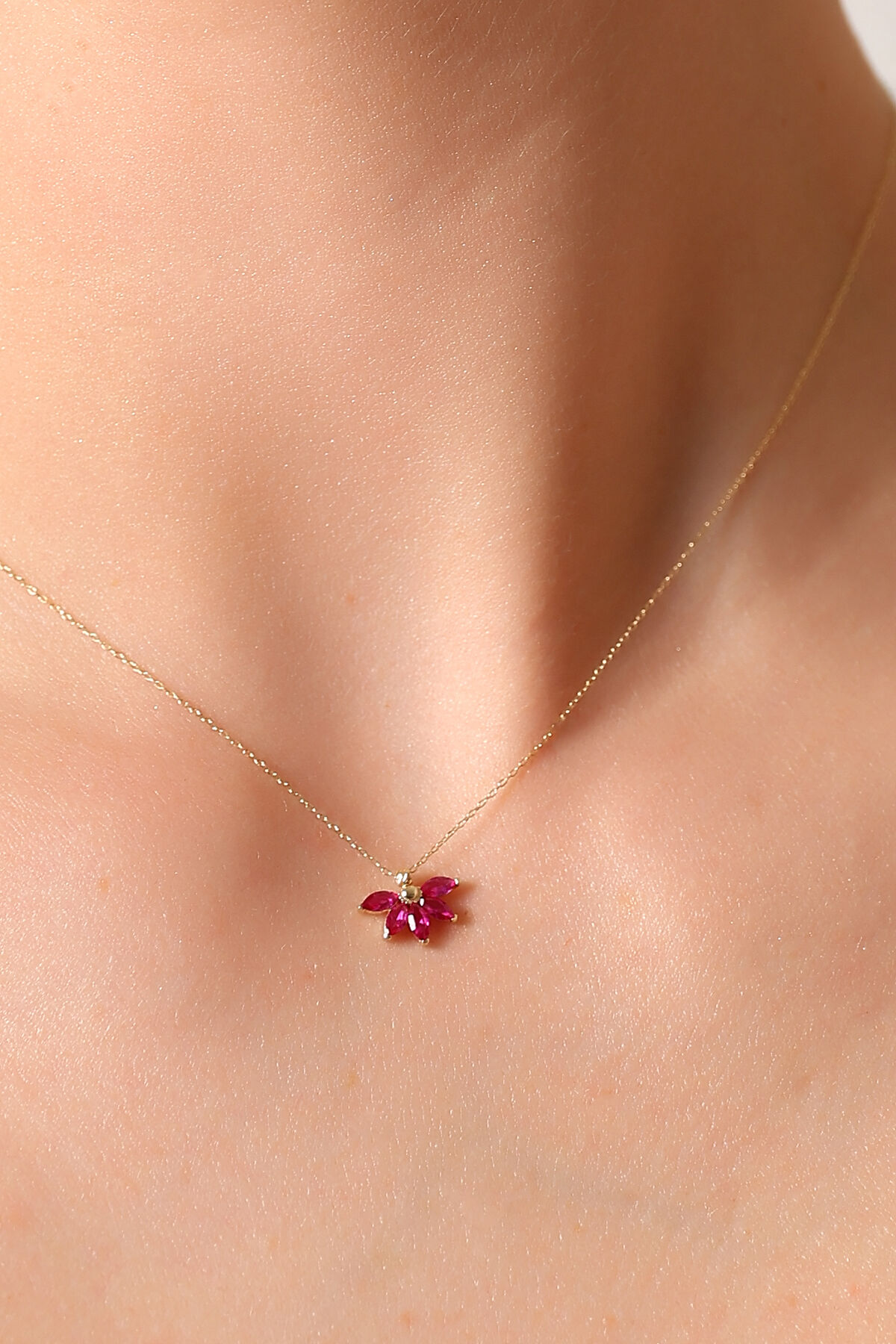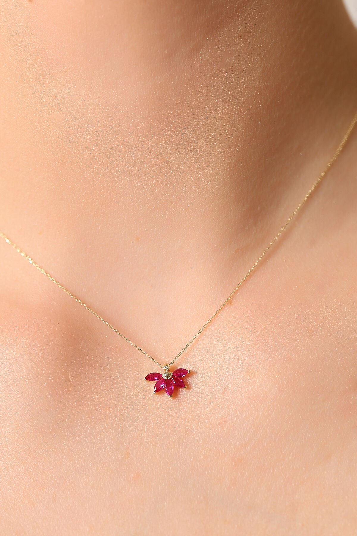Kolyecik 14 Ayar Altın Kırmızı Taş Kolye
