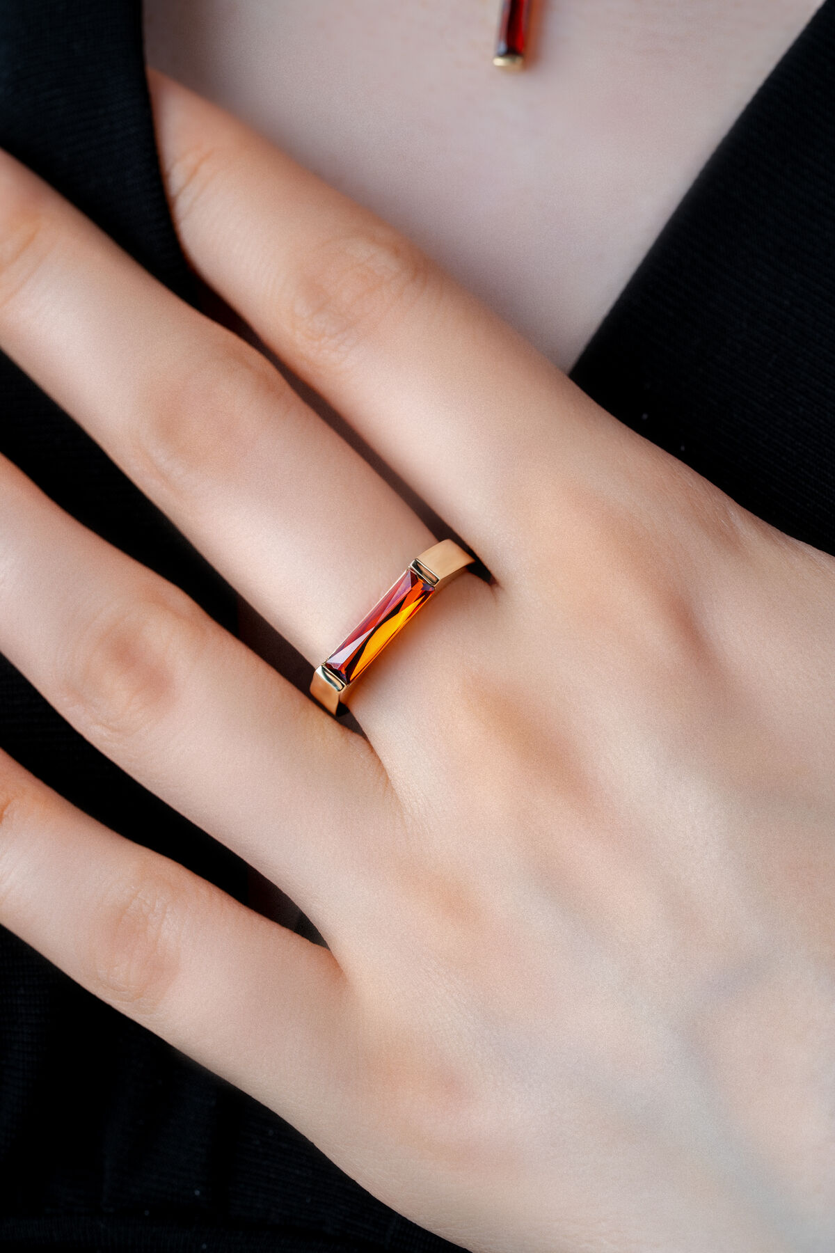 Kolyecik 14 Ayar Altın Kırmızı Taşlı Çubuk Yüzük