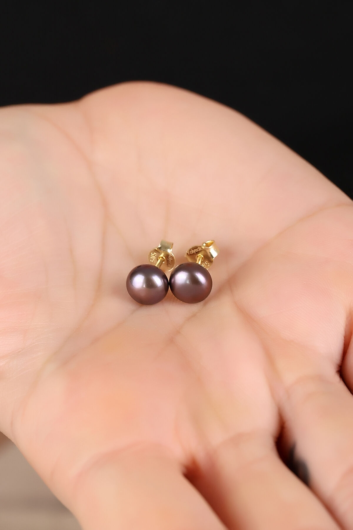 Kolyecik 14 Ayar Altın Kolyecik Siyah Doğal İnci Küpe