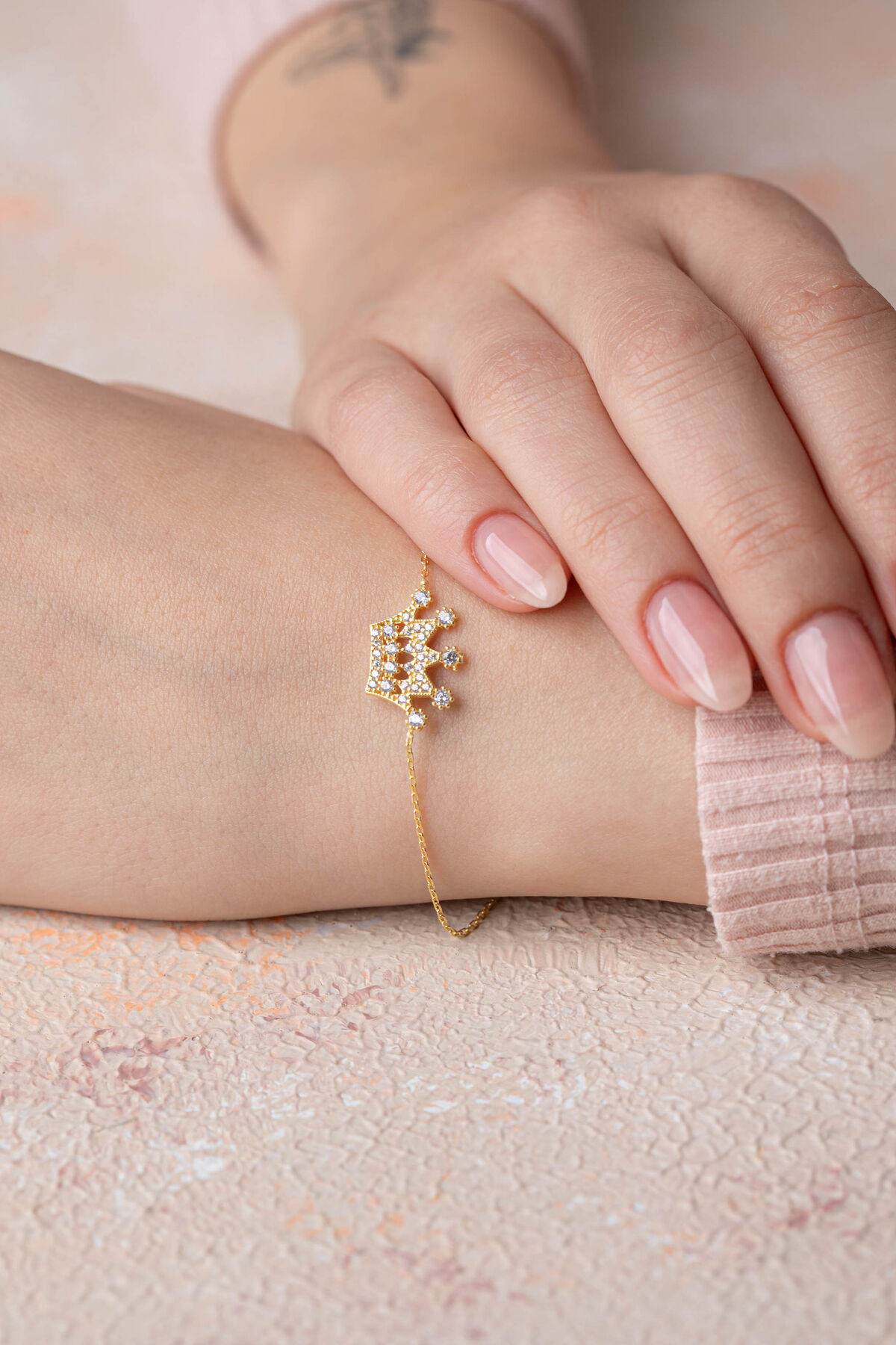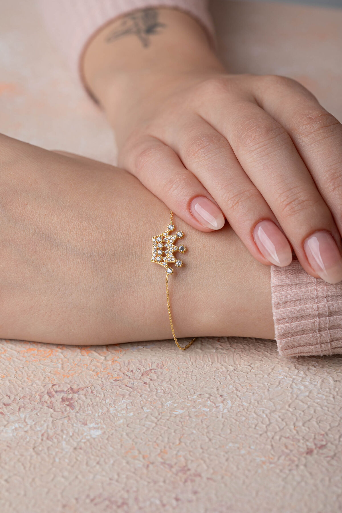 Kolyecik 14 Ayar Altın Kral Tacı Bileklik