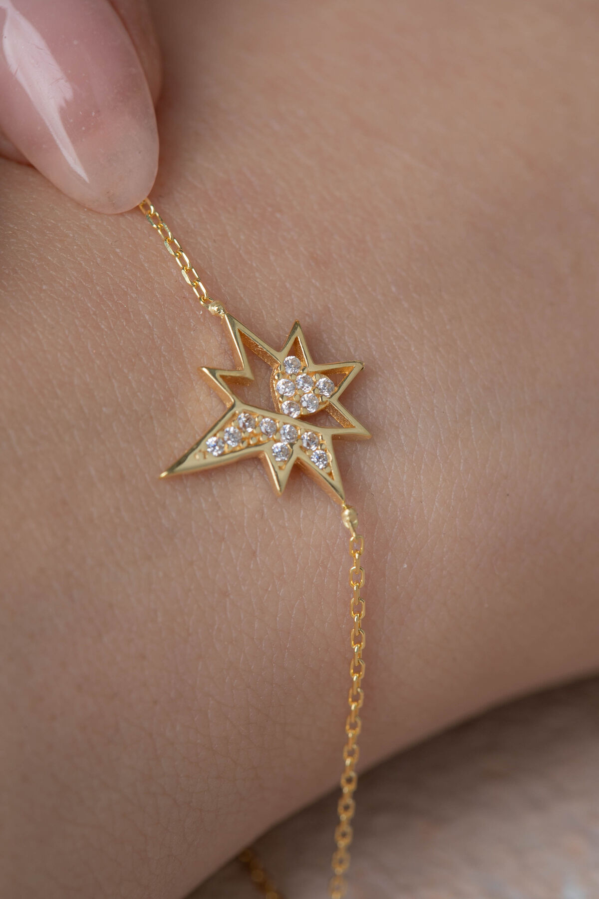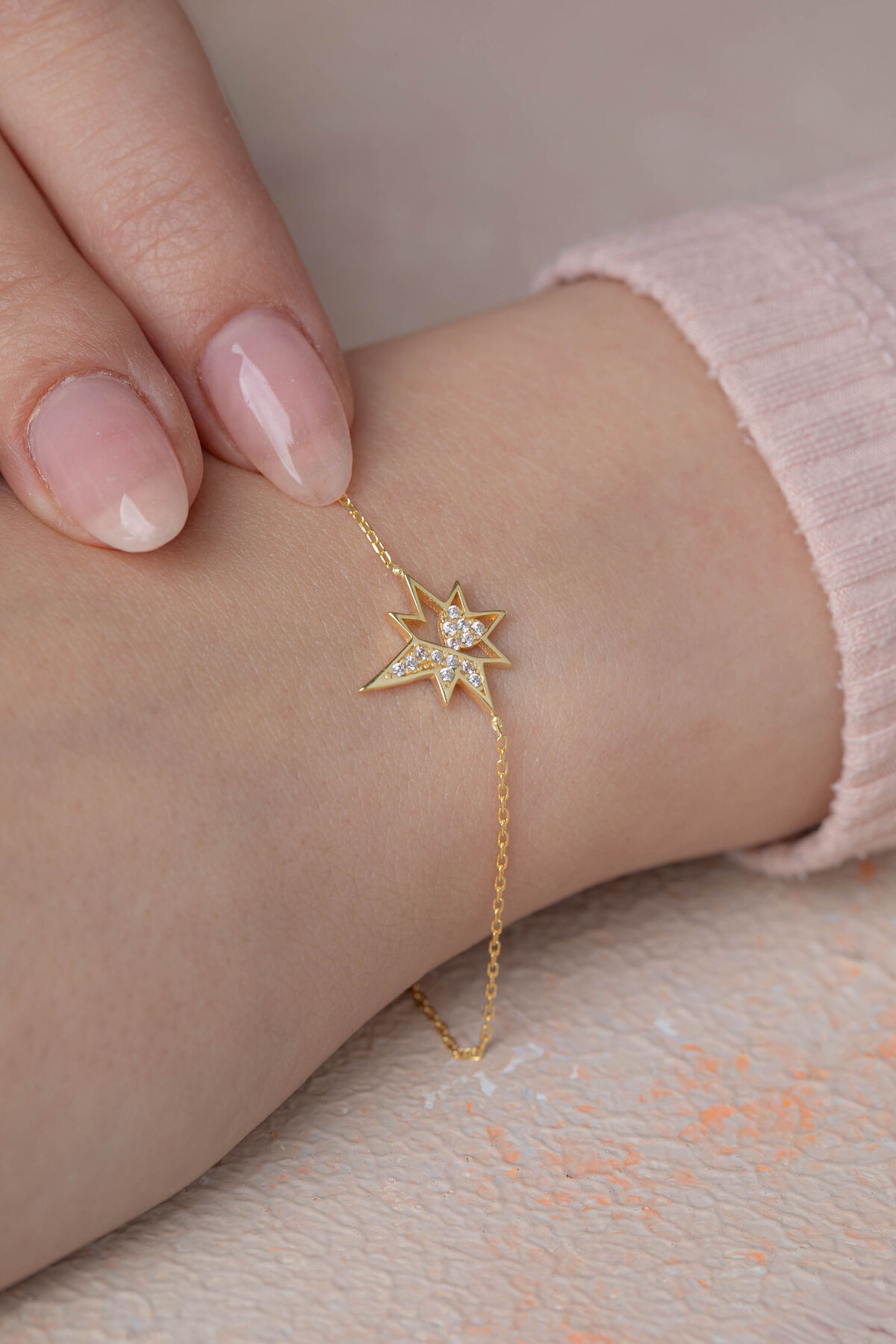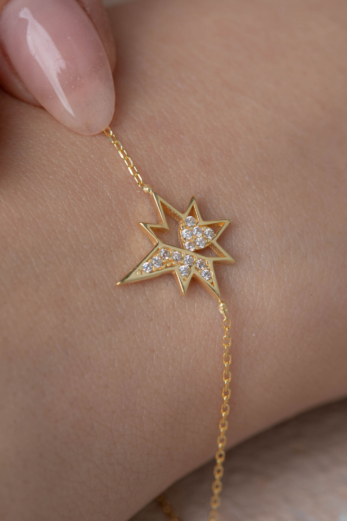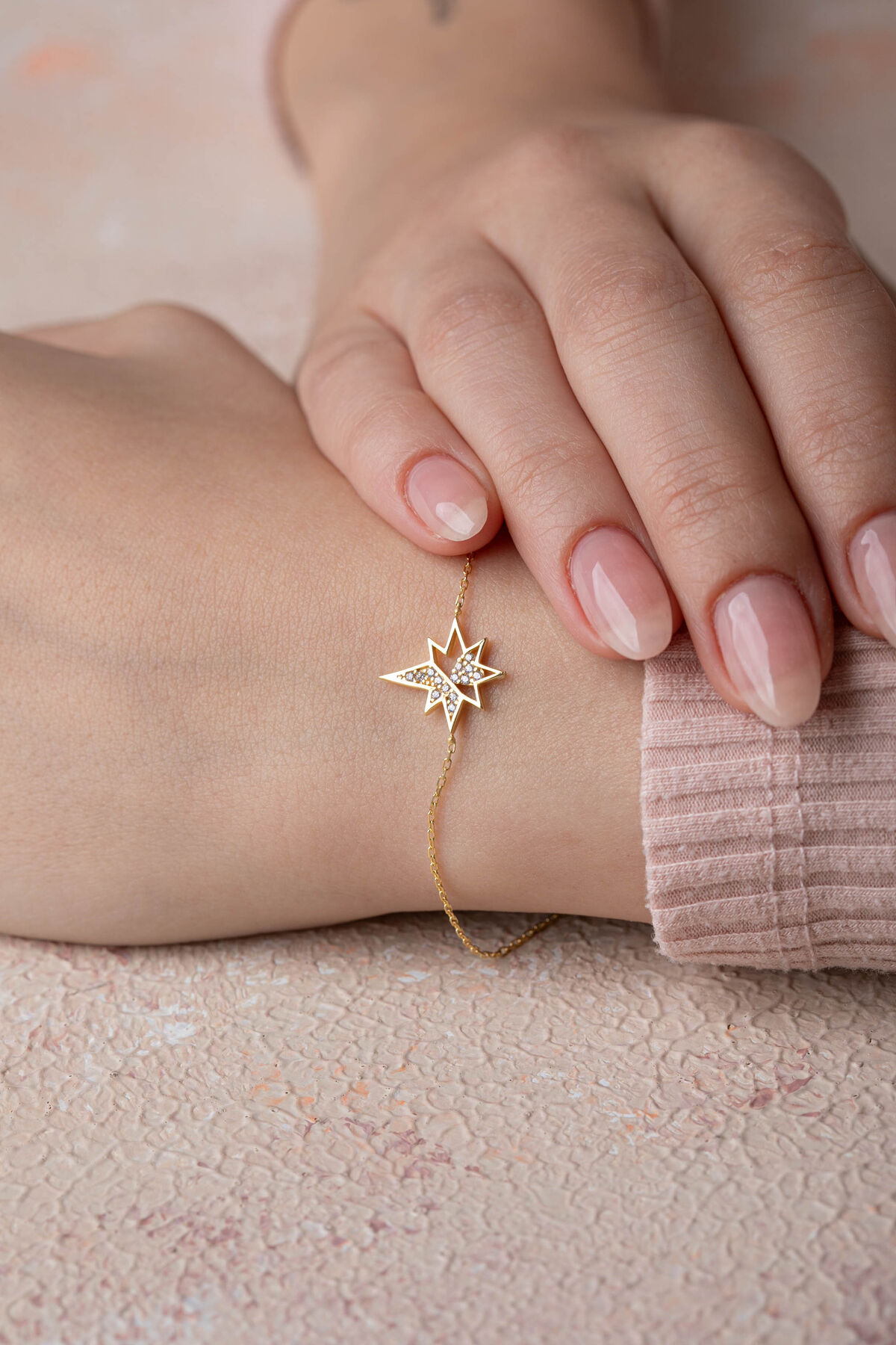 Kolyecik 14 Ayar Altın Kutup Yıldızı Bileklik