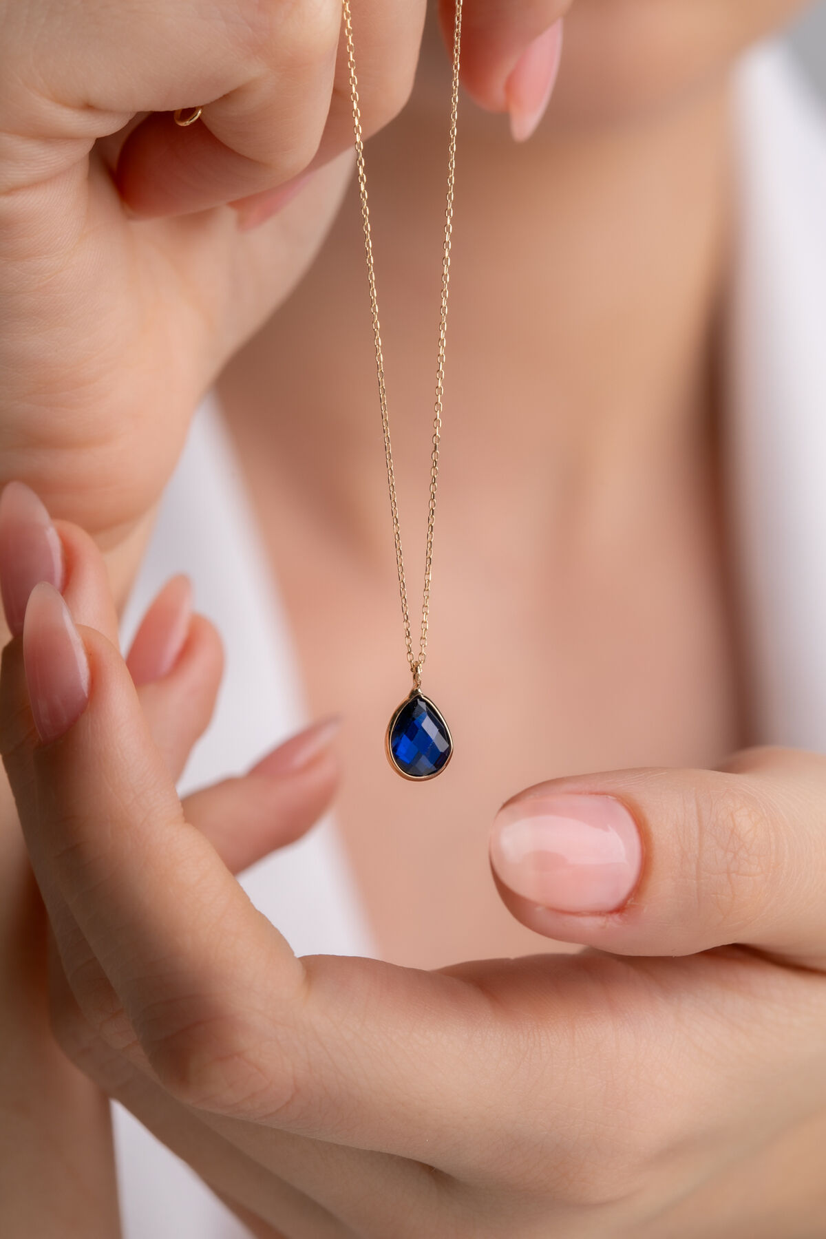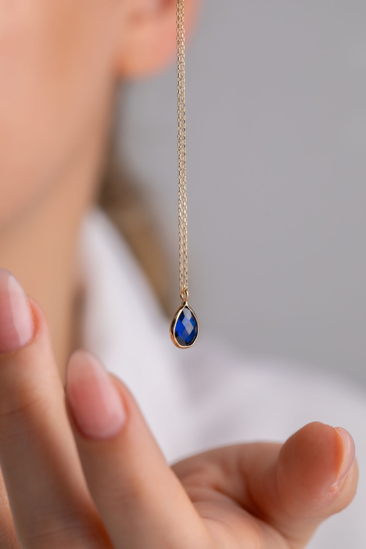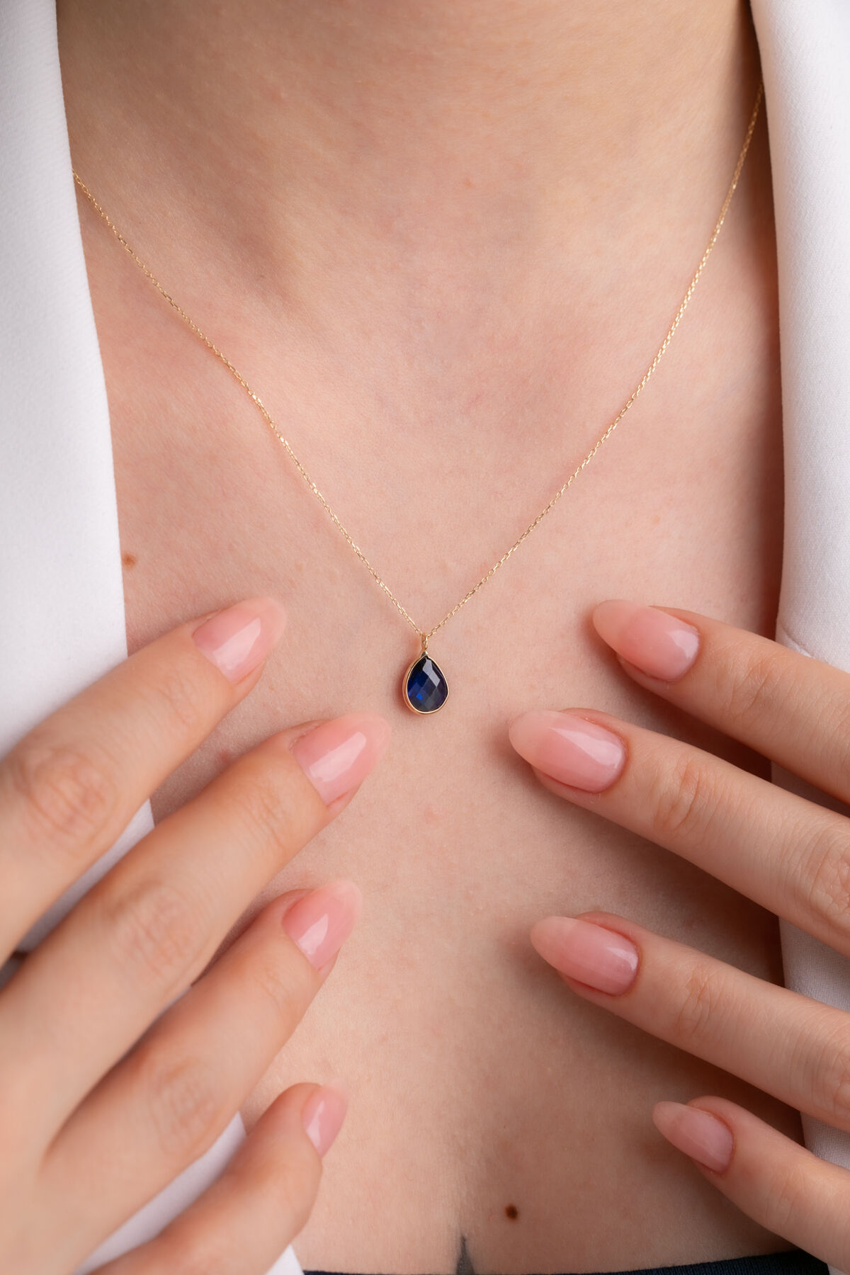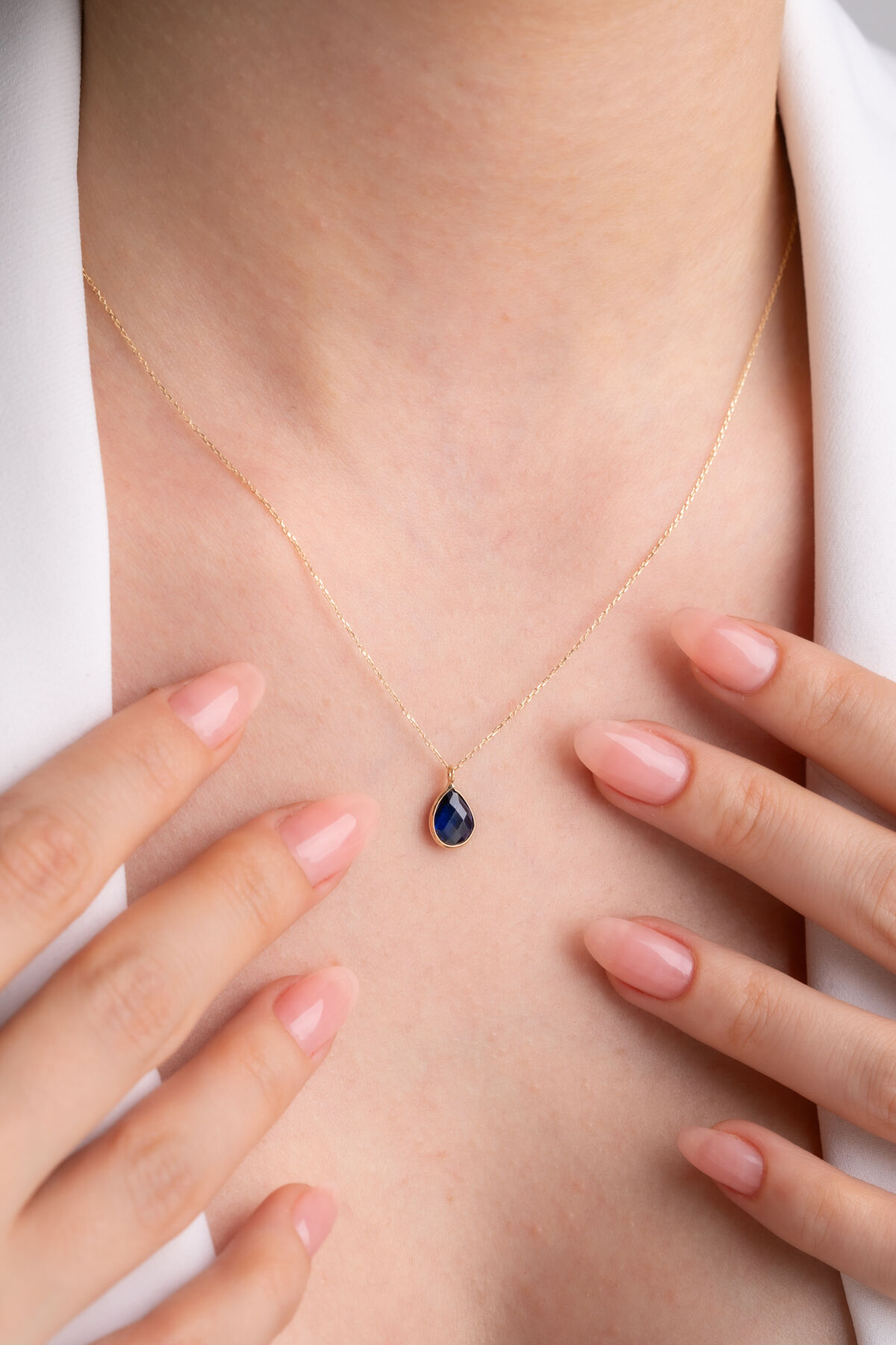 Kolyecik 14 Ayar Altın Lacivert Damla Taş Kolye