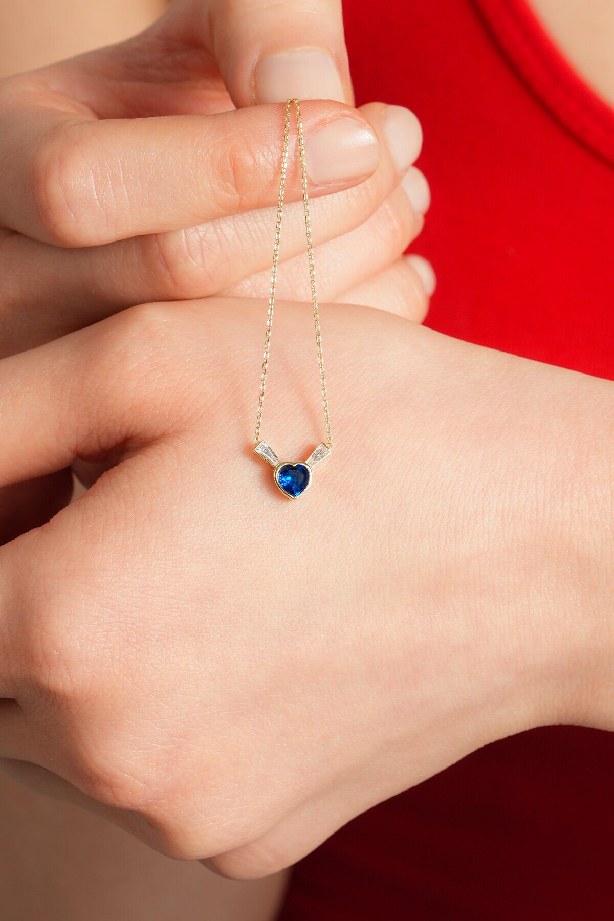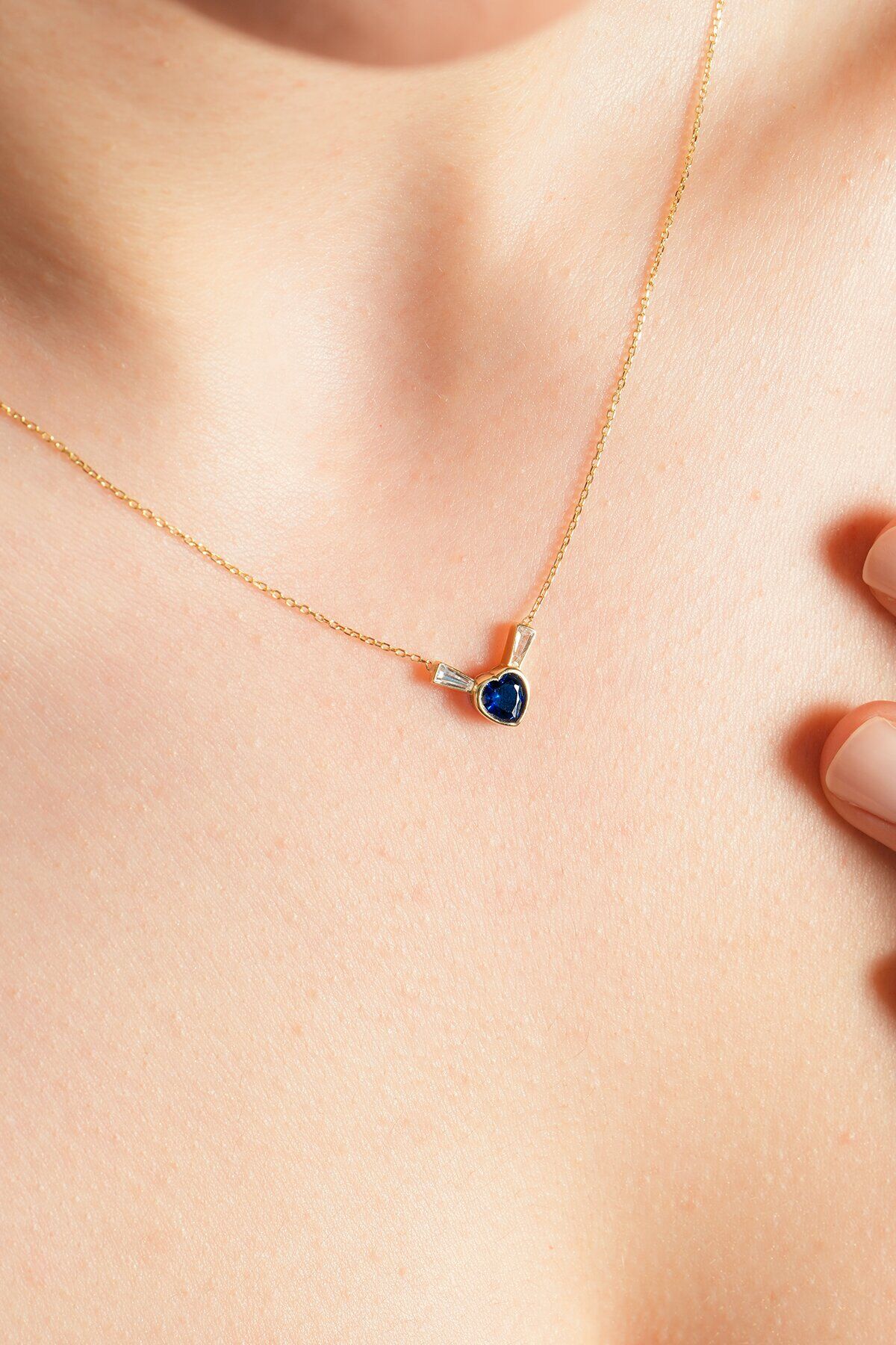 Kolyecik 14 Ayar Altın Lacivert Kalp Kolye