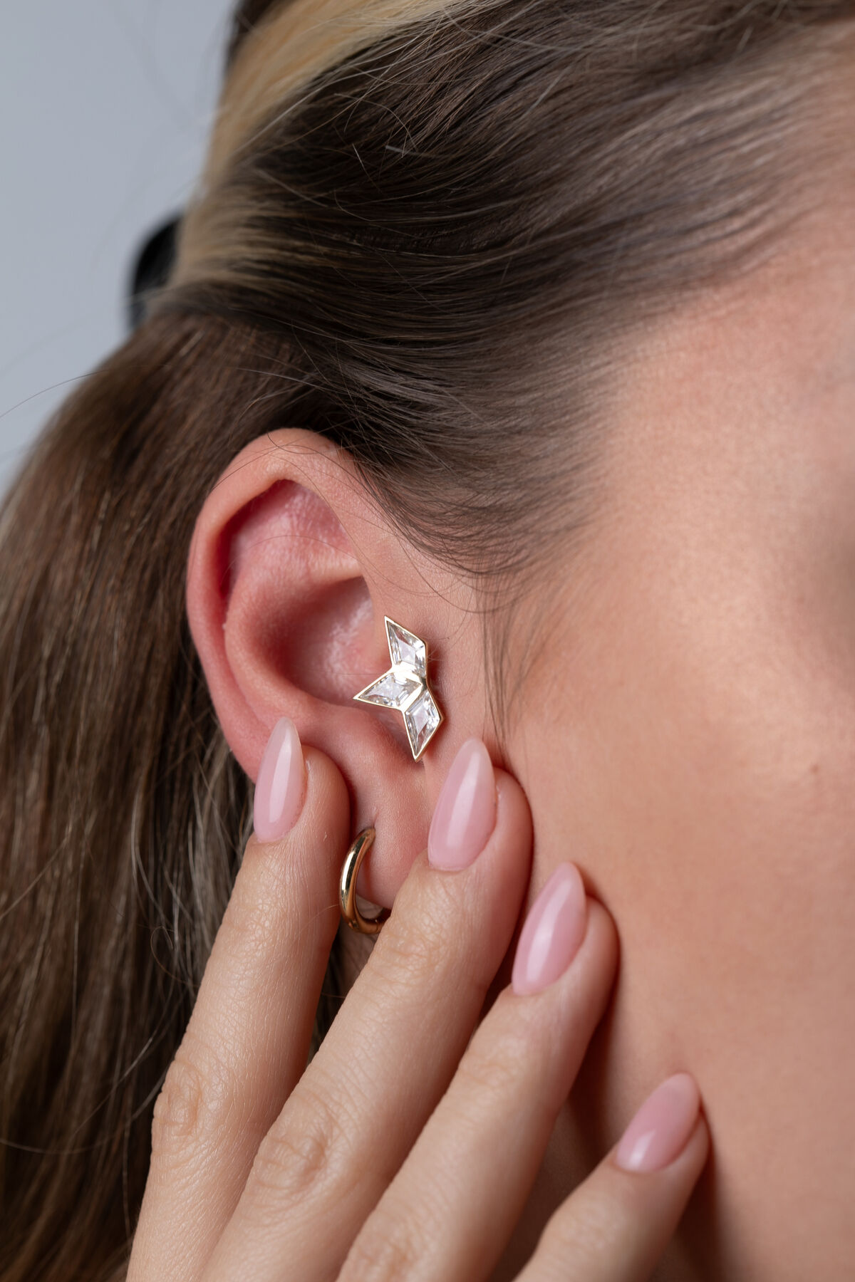 Kolyecik 14 Ayar Altın Lotus Beyaz Taşlı Küpe