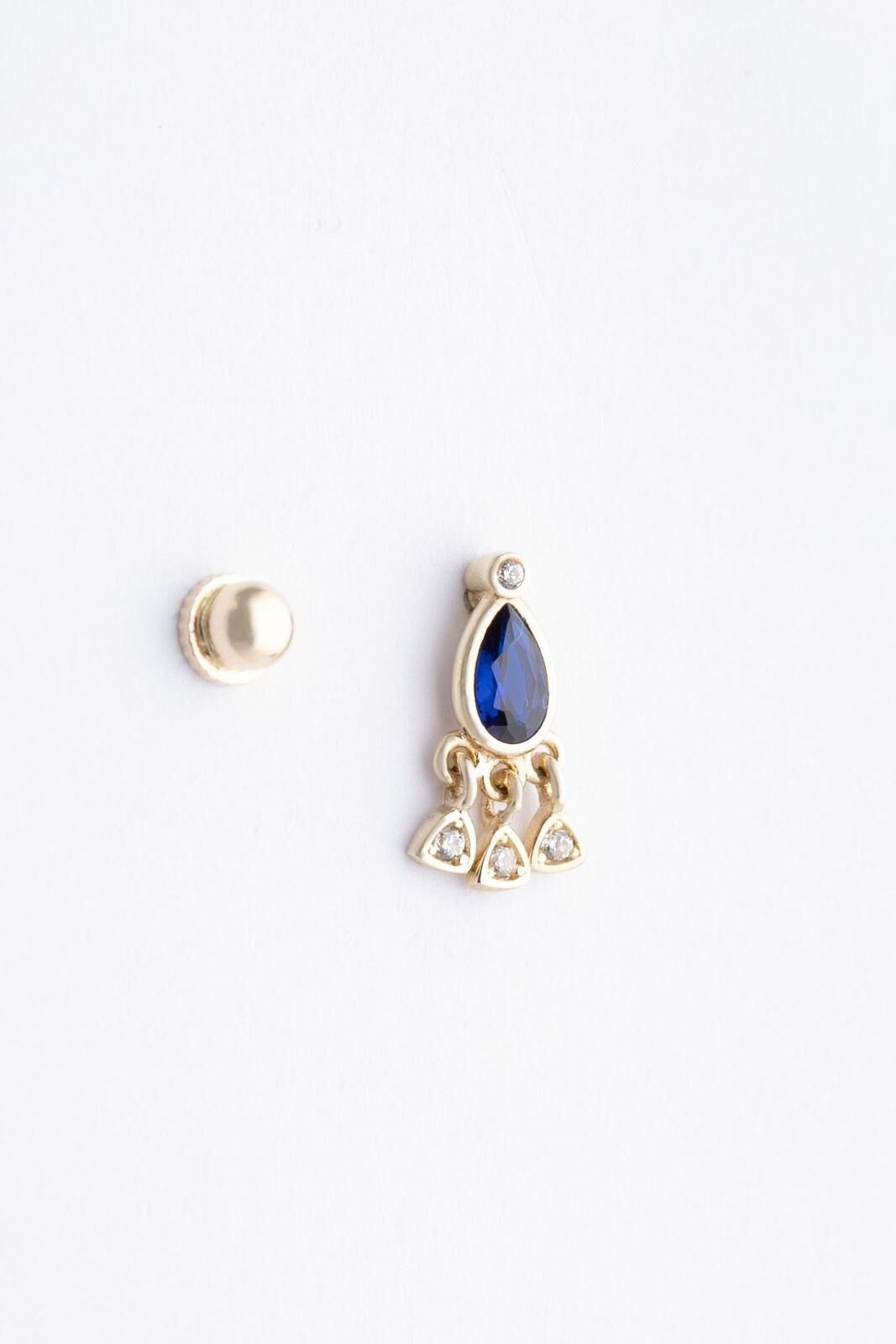 Kolyecik 14 Ayar Altın Mavi Damla Küpe