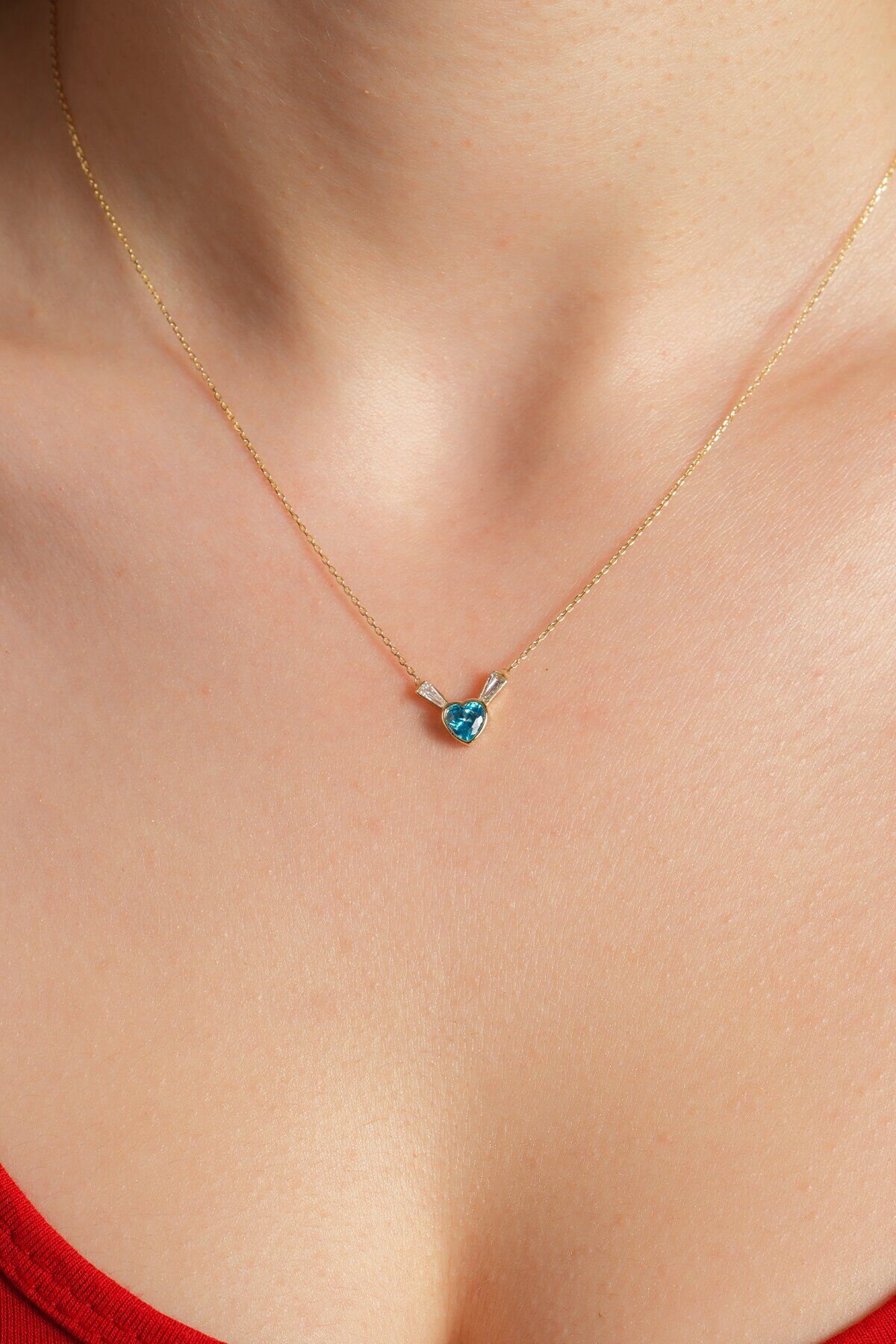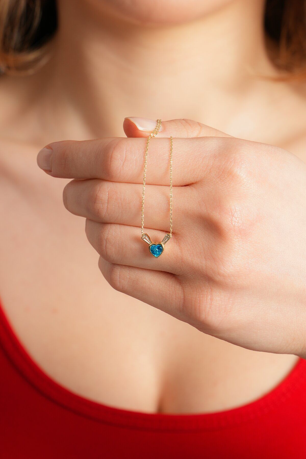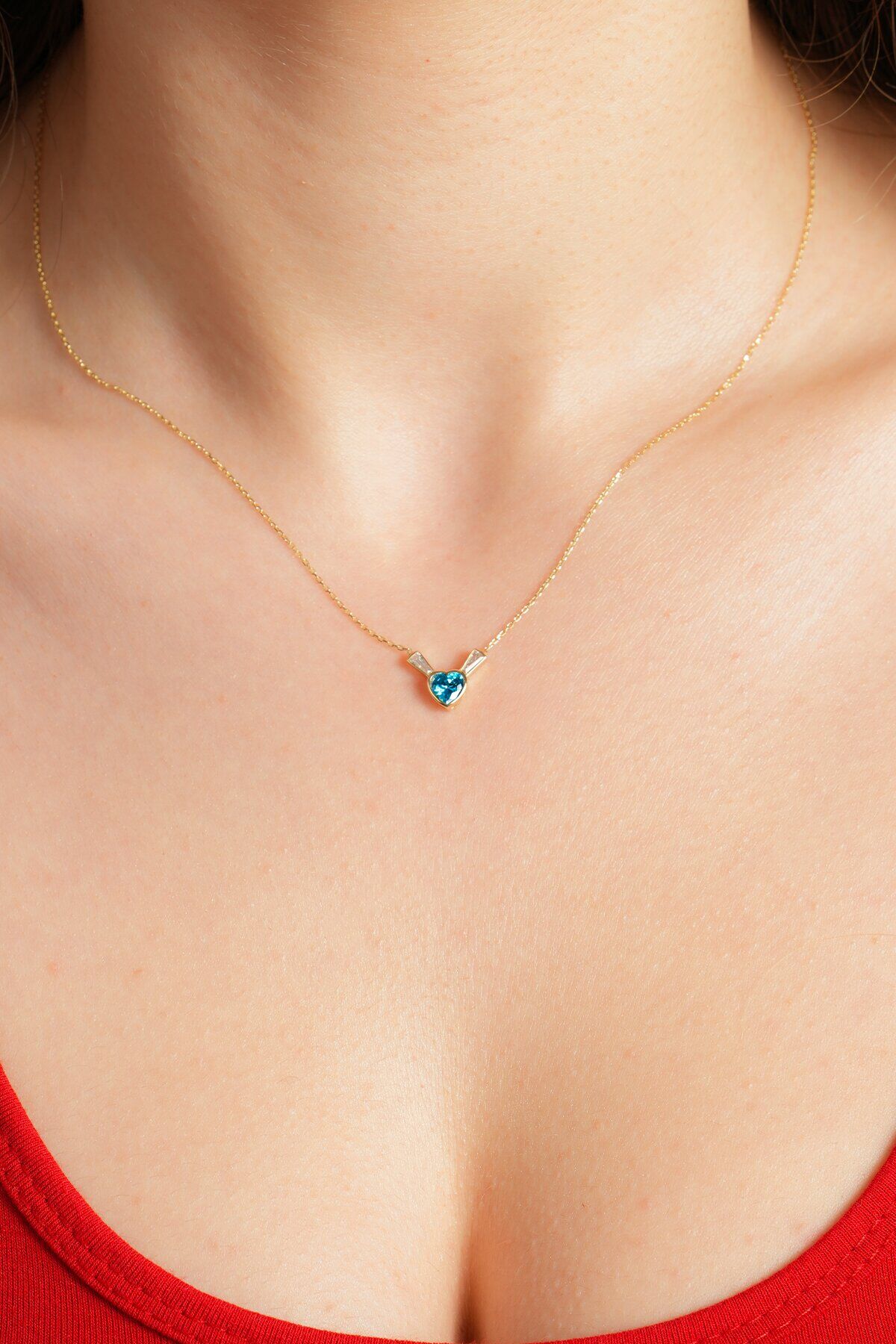Kolyecik 14 Ayar Altın Mavi Kalp Kolye
