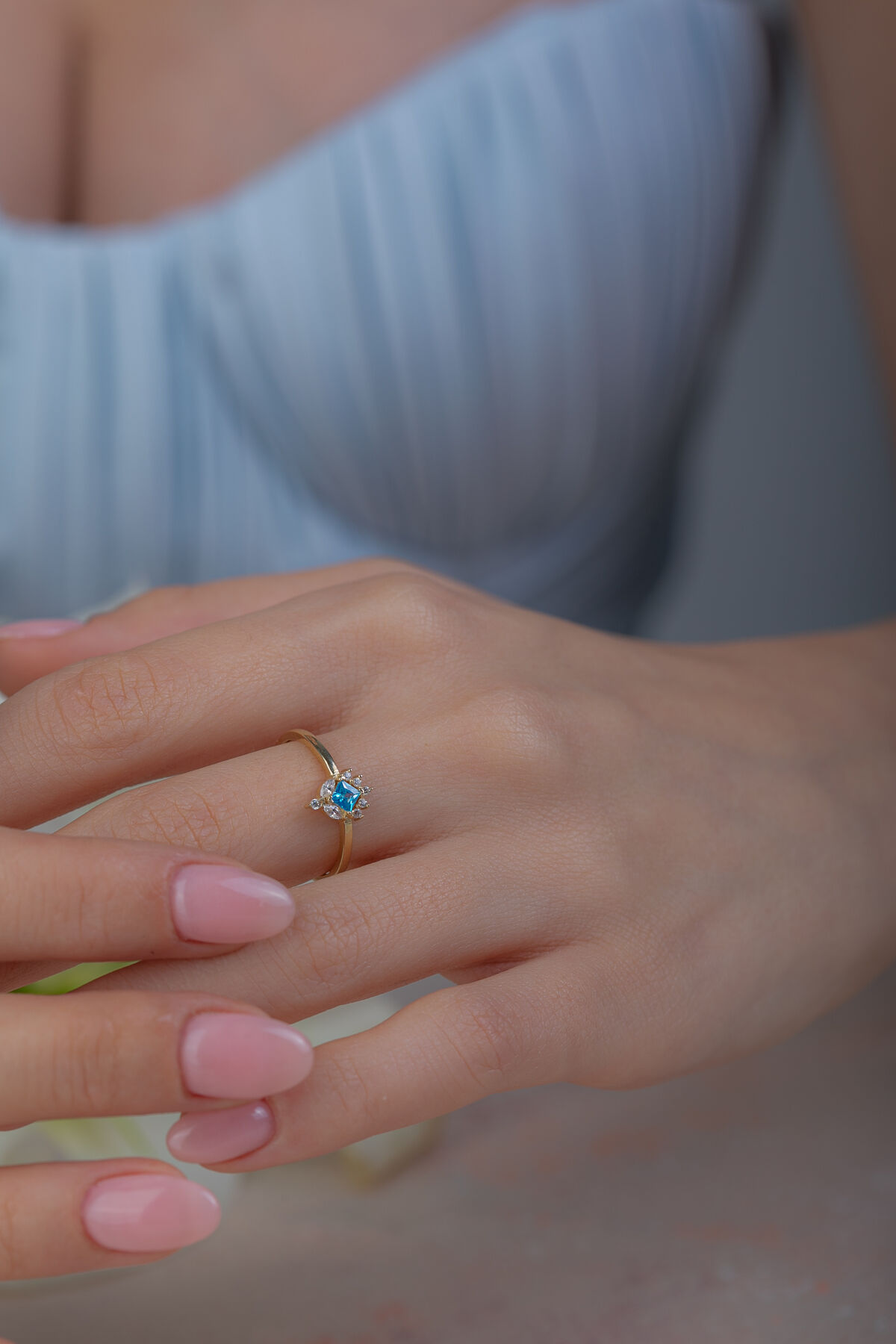 Kolyecik 14 Ayar Altın Mavi Taşlı Yüzük