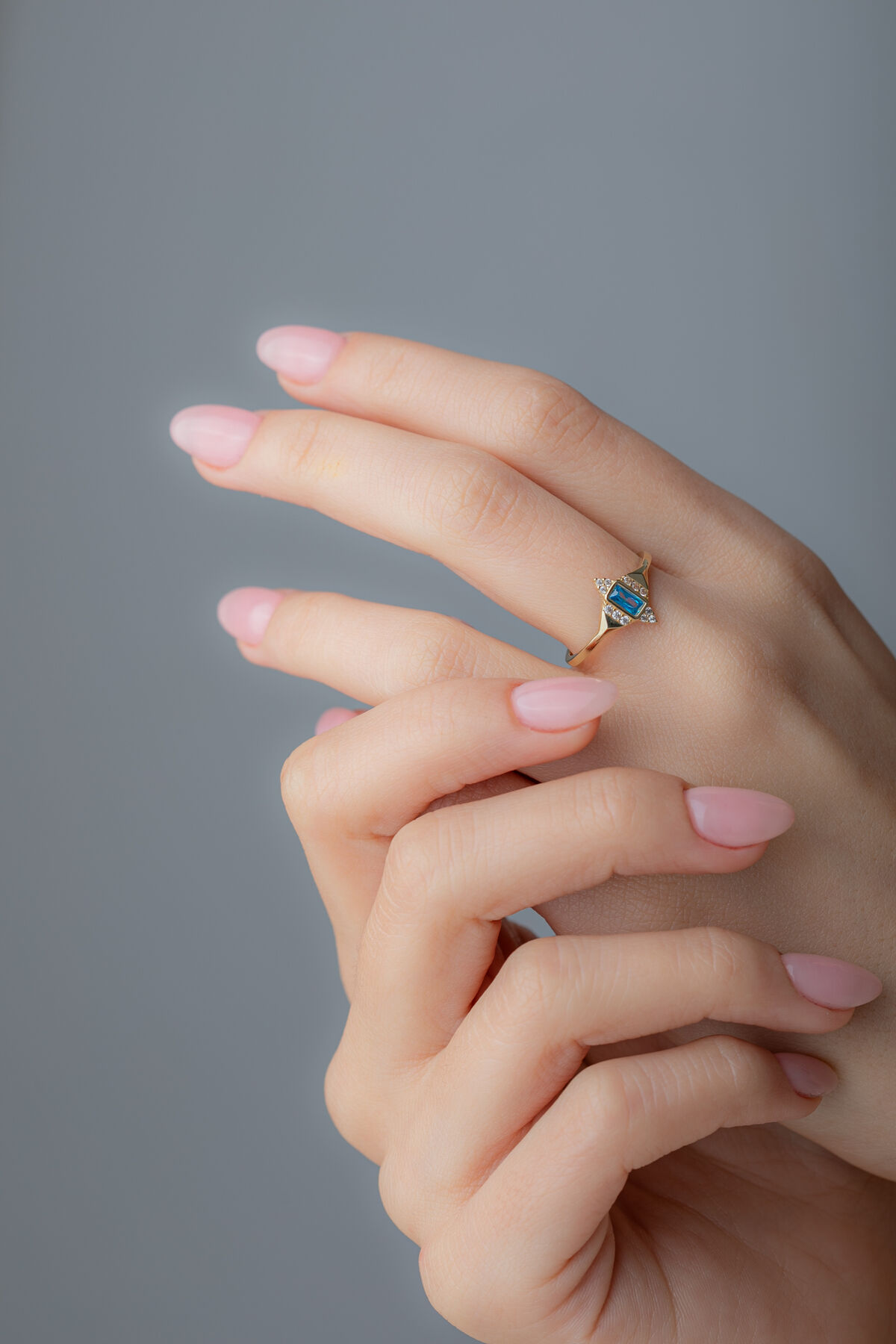Asaletin ve huzurun simgesi… Bu 14 ayar altın mavi taşlı yüzük, zarif tasarımıyla klasik şıklığı modern bir dokunuşla buluşturuyor. 1,25 gramlık hafif yapısı parmakta konforlu bir duruş sağlarken, mavi taşın derin ve dingin tonu altının sıcak ışıltısıyla büyüleyici bir uyum yakalar. Mavi taş sadakati, içsel dengeyi ve huzuru temsil ederken, her ışıkta zarif bir ışıltı yayar. Usta el işçiliğiyle özenle hazırlanmış bu tasarım, hem günlük kullanımda zarif bir tamamlayıcı hem de özel günlerde lüks bir aksesuar olarak fark yaratır. Kaliteli yapısı uzun yıllar boyunca ilk günkü parlaklığını korur. Ürüne özel sertifikasıyla güvenle sunulan bu yüzük, sevdiklerinize anlam dolu bir armağan ya da kendinize zarafet dolu bir ışıltı olarak mükemmel bir tercihtir. Siparişiniz 2 iş günü içinde özenle kargoya verilir.