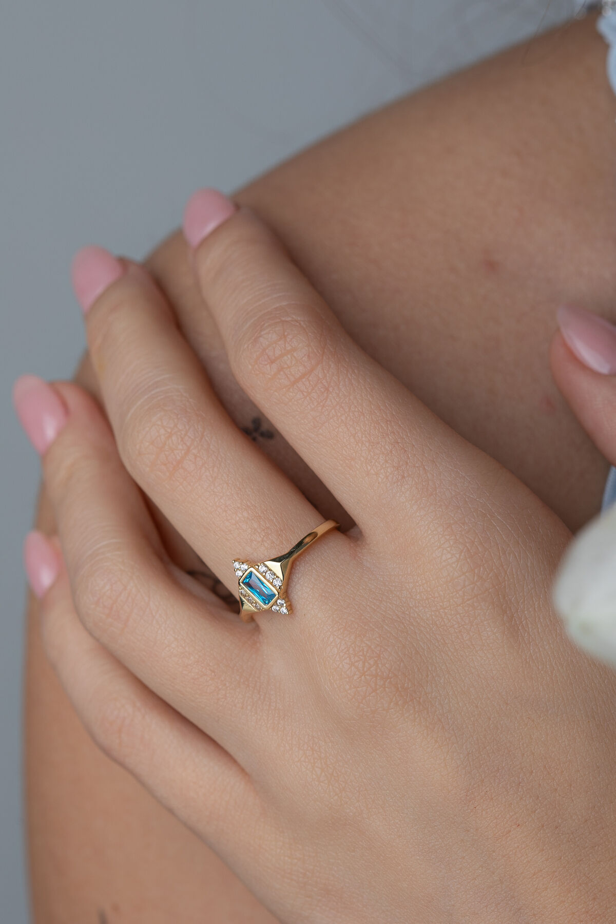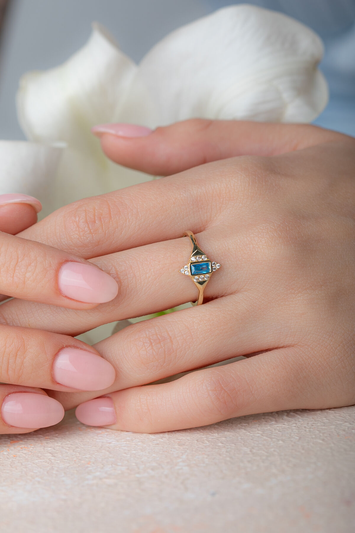 Kolyecik 14 Ayar Altın Mavi Taşlı Yüzük
