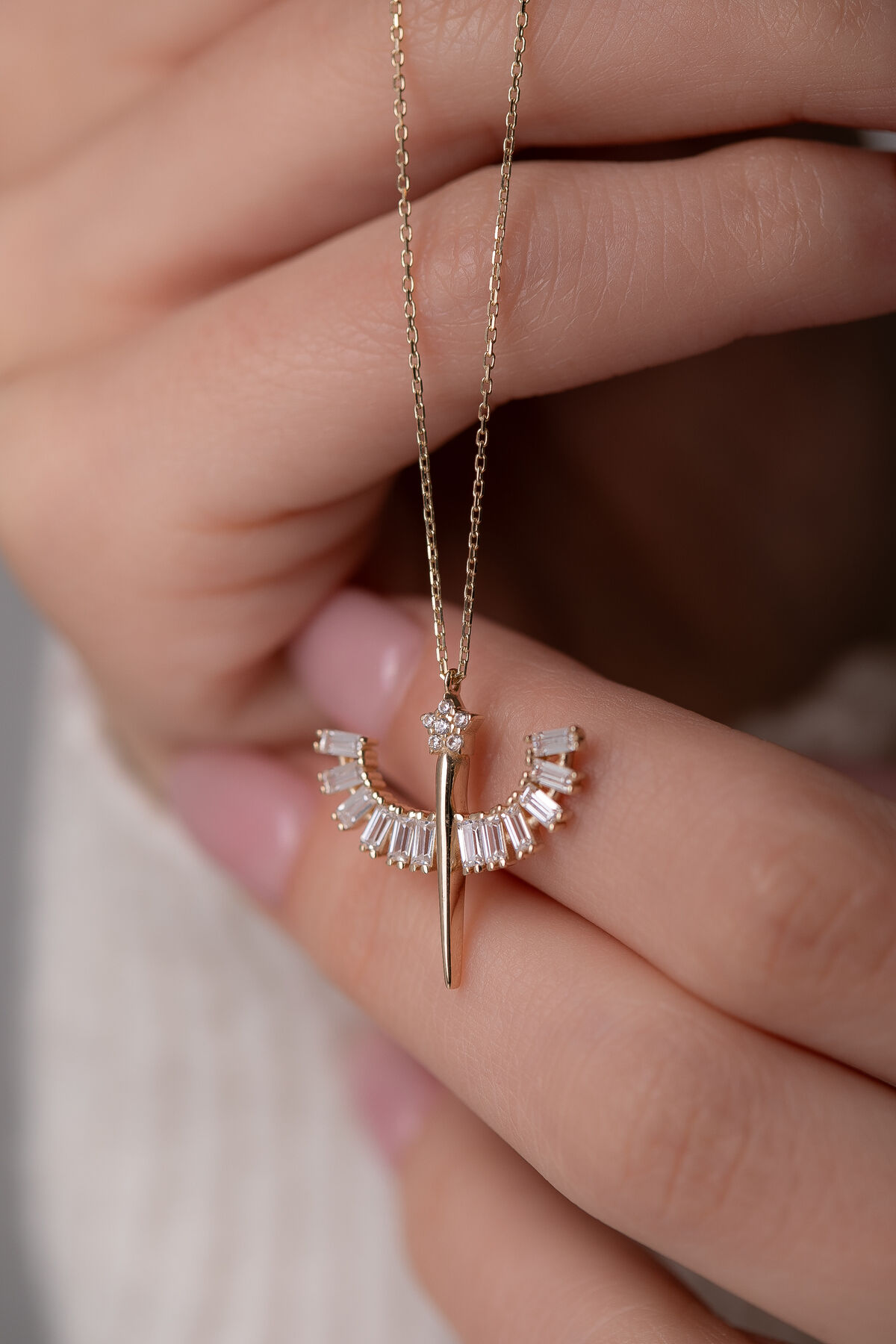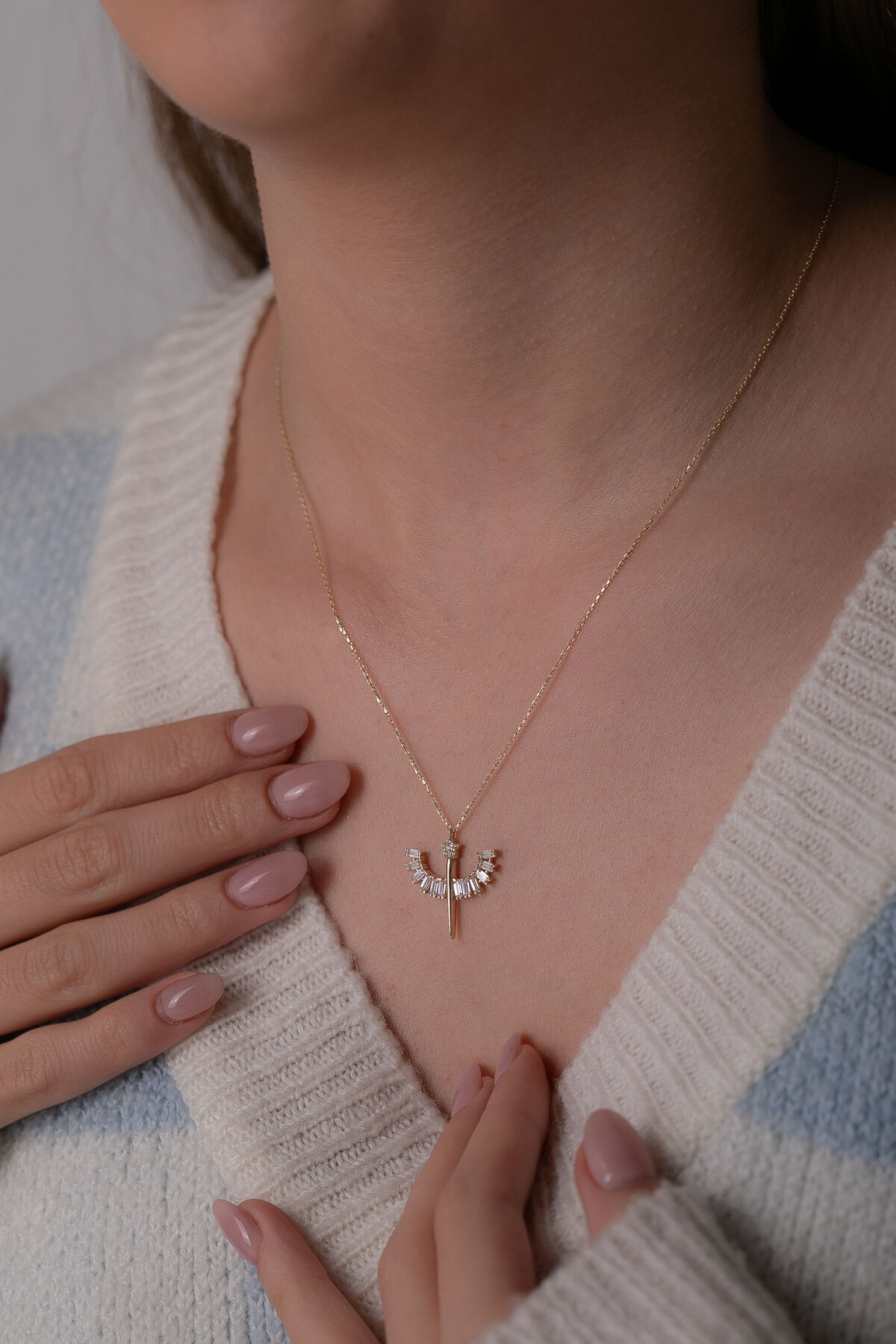Koruyucu enerjisi ve güçlü anlamıyla bilinen Mikail figürünü altının sıcak ışıltısıyla buluşturan 14 Ayar Altın Mikail Kolye, 2,40 gram ağırlığındaki etkileyici ve anlamlı tasarımıyla stilinize güçlü bir duruş katar. Mikail motifinin ince işçilikle işlenen detayları, kolyeye hem ruhani bir anlam hem de estetik bir şıklık kazandırarak günlük kombinlerde de özel anlarda da dikkat çekici bir görünüm sunar. Bu özel model tamamen el yapımı olarak hazırlandığı için üretimin doğal yapısı gereği ağırlıkta %5 + / - değişkenlik gösterebilir. Bu benzersiz farklılıklar her bir kolyeyi özel kılar ve el işçiliğinin gerçek değerini ortaya çıkarır. 14 ayar altının parlak yüzeyi, figürün ince hatlarını öne çıkararak uzun yıllar boyunca canlılığını korur. Her sipariş büyük bir özenle hazırlanır ve ürünün değerini doğrulayan ürüne özel sertifika mevcuttur. Tüm hazırlık aşamalarının ardından kolyeniz 2 günde kargoya teslim edilir, böylece bu anlamlı ve ışıltılı tasarıma kısa sürede sahip olabilirsiniz. Gücü, koruyucu enerjiyi ve manevi anlamı bir arada taşıyan bu Mikail kolye hem kendiniz hem de sevdikleriniz için özel, anlamlı ve şık bir hediye alternatifi sunar.