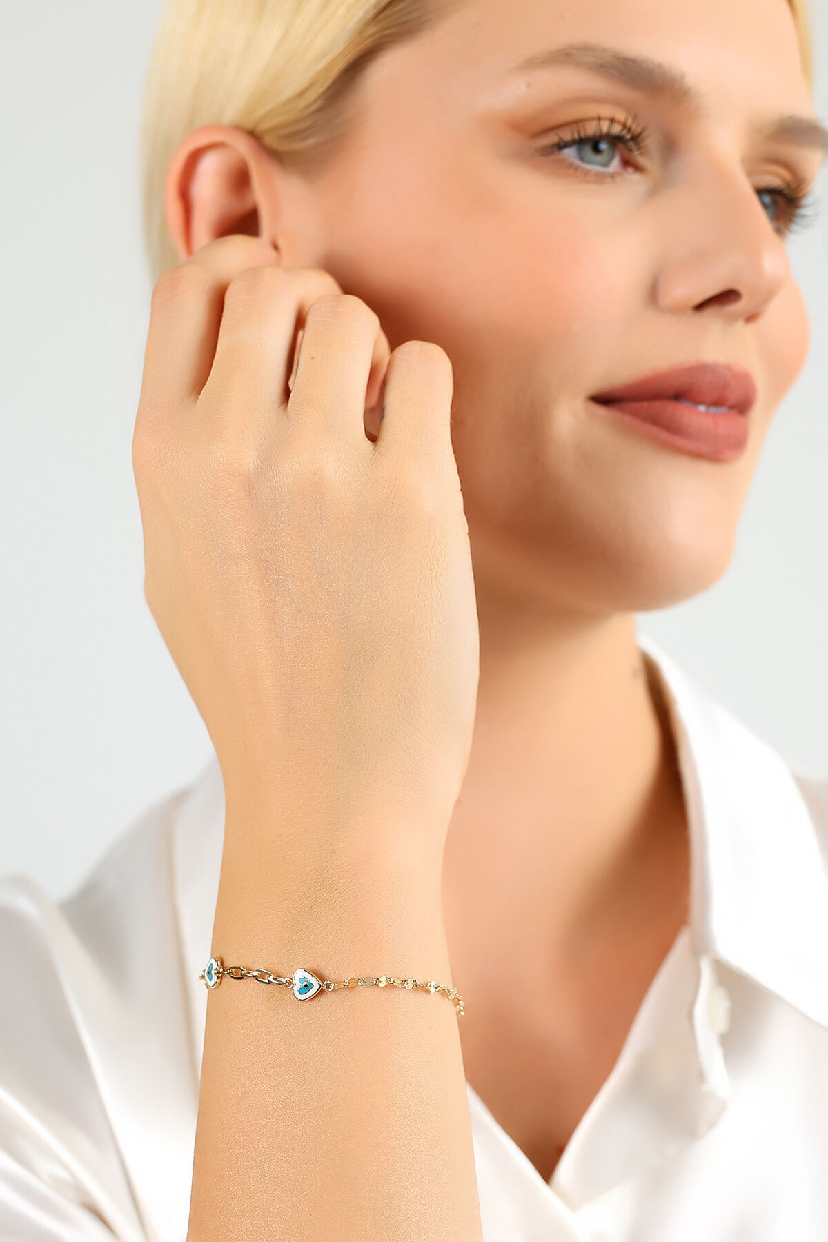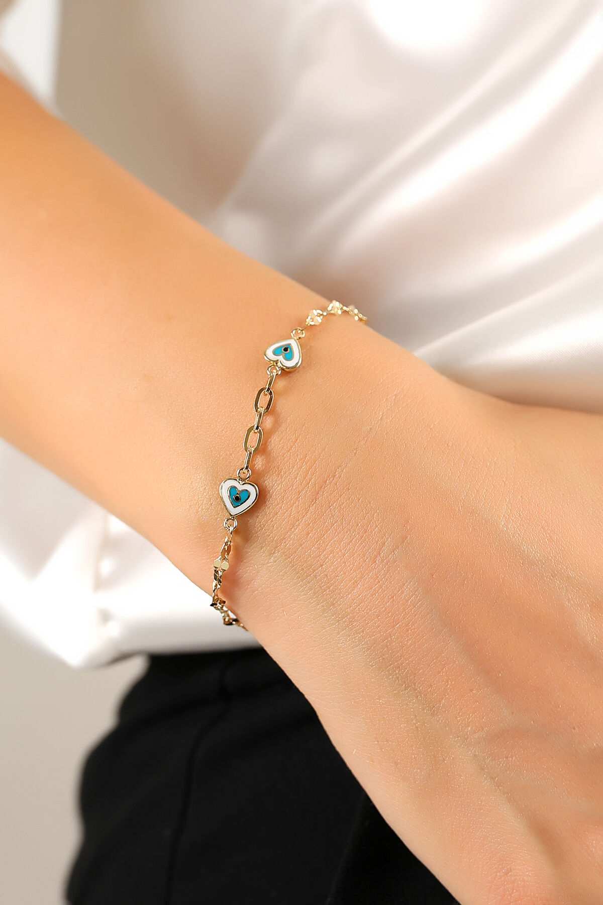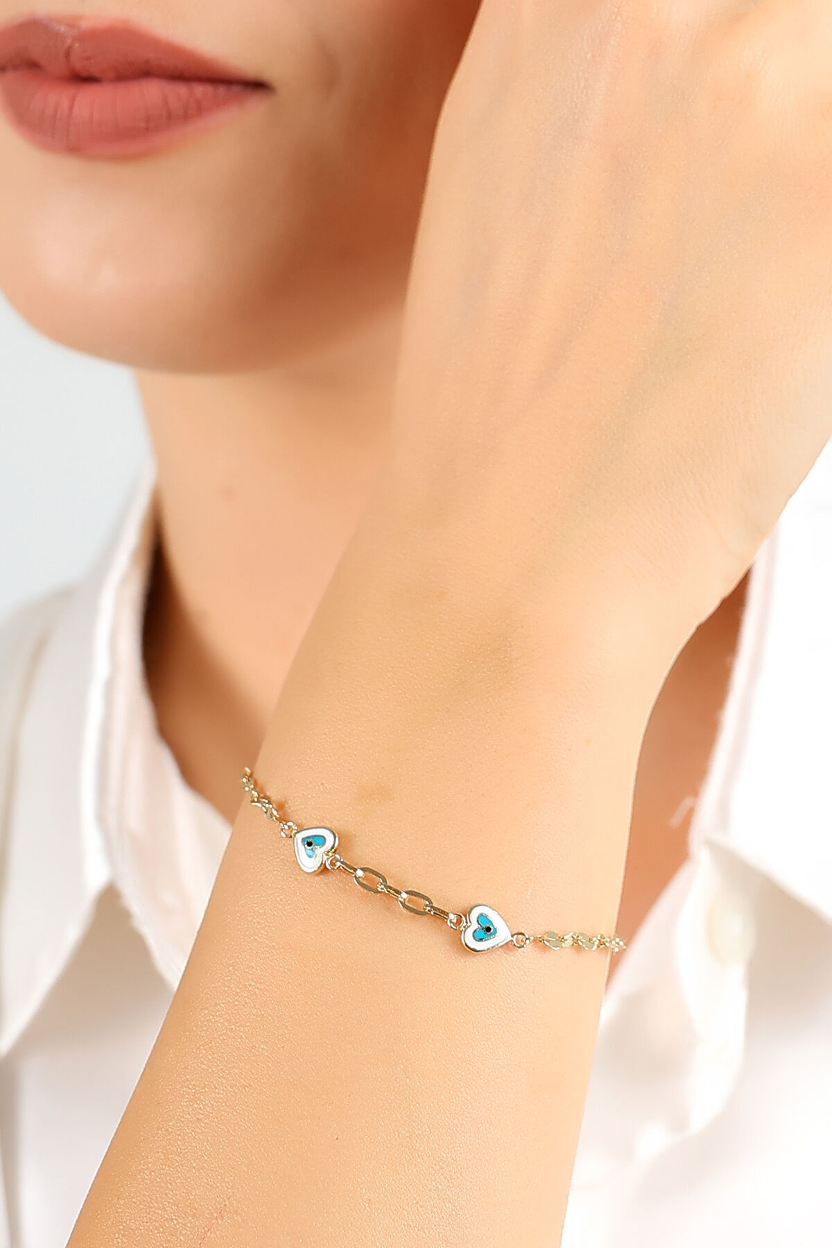 Kolyecik 14 Ayar Altın Mineli Kalp Bileklik