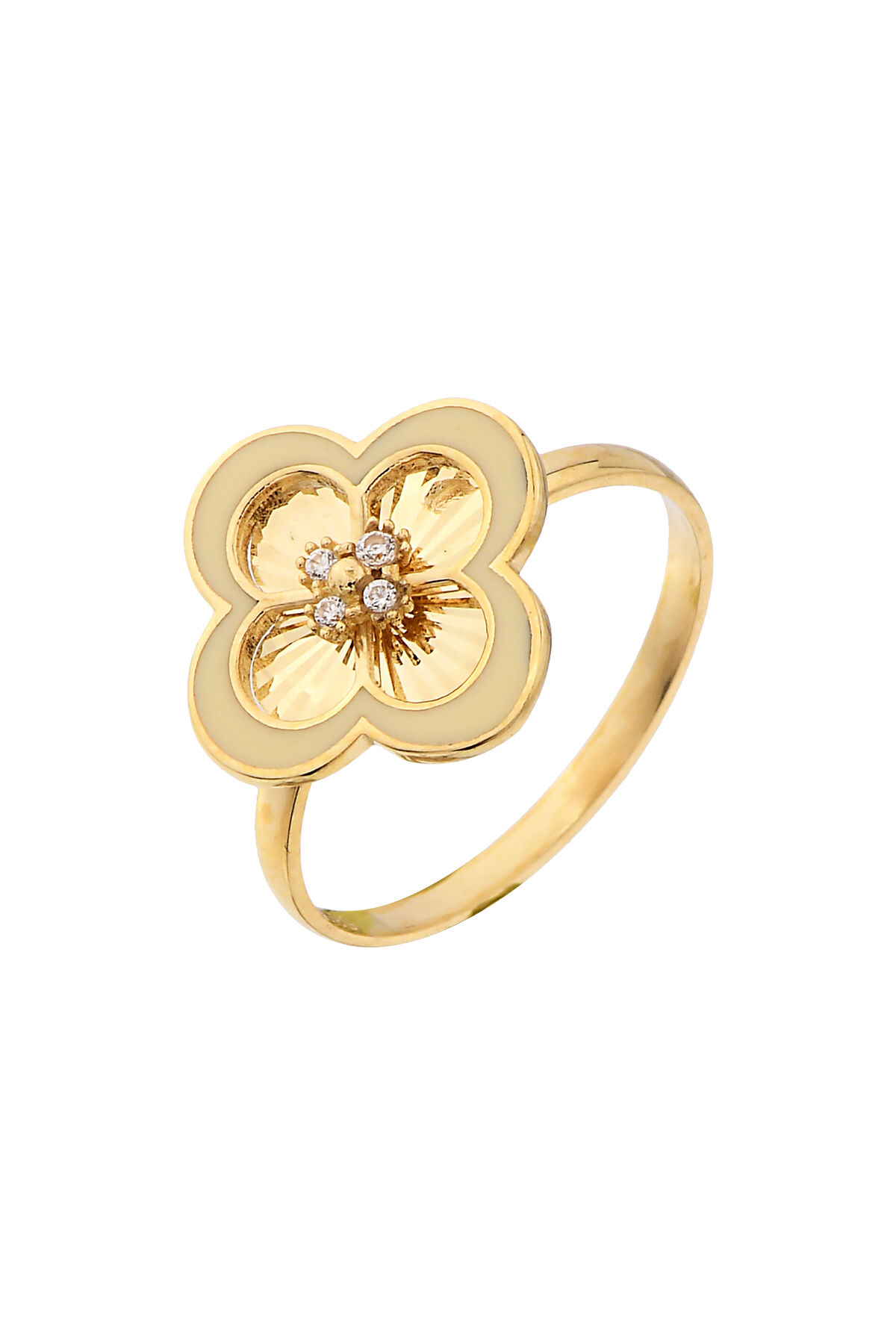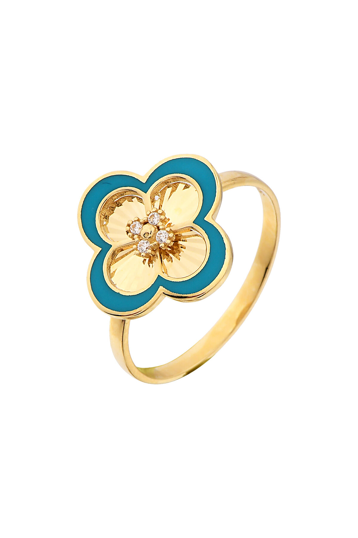 Kolyecik 14 Ayar Altın Mineli Yonca Yüzük