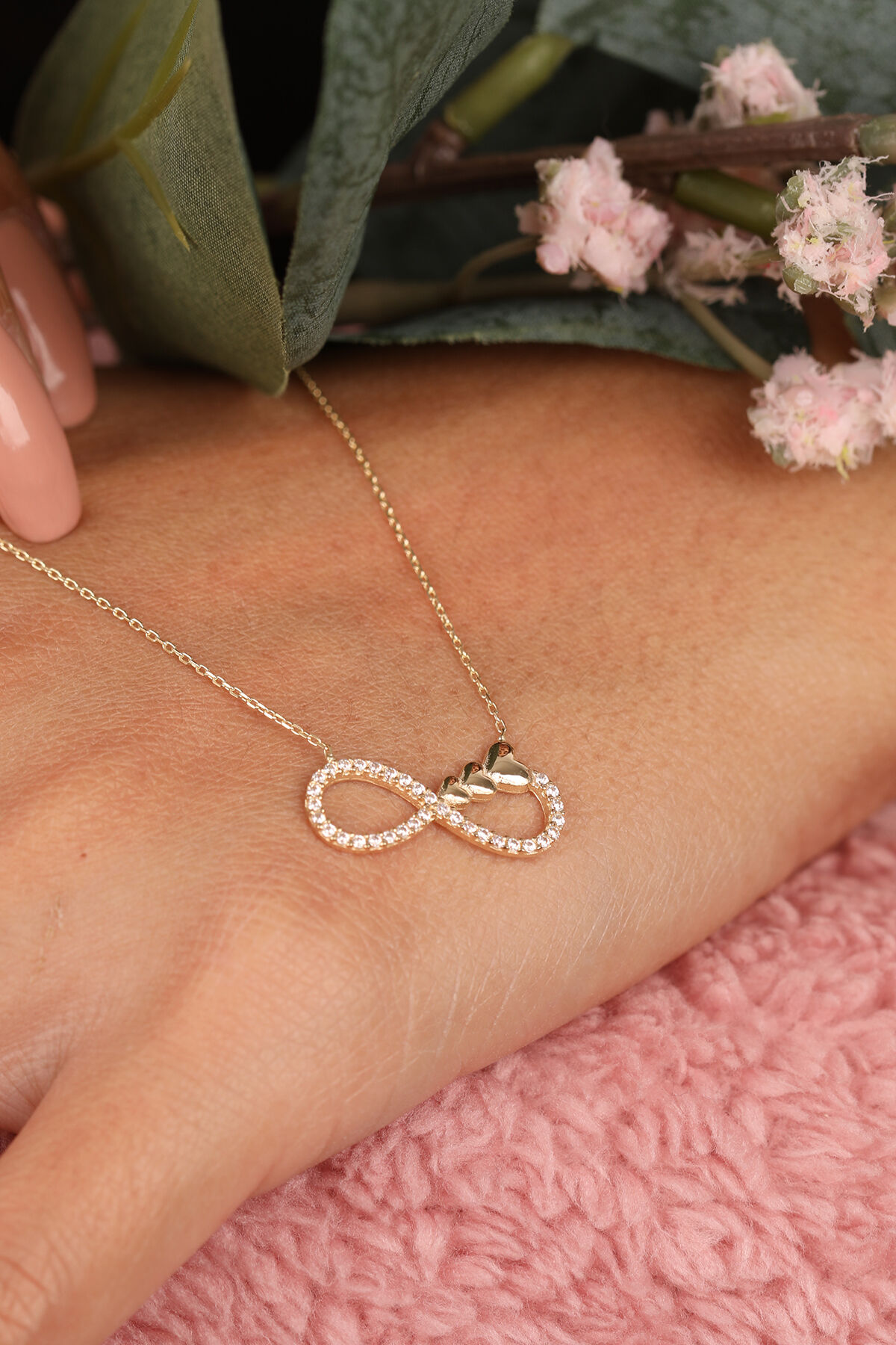 Kolyecik 14 Ayar Altın Minimal Kalpli Sonsuzluk Kolye