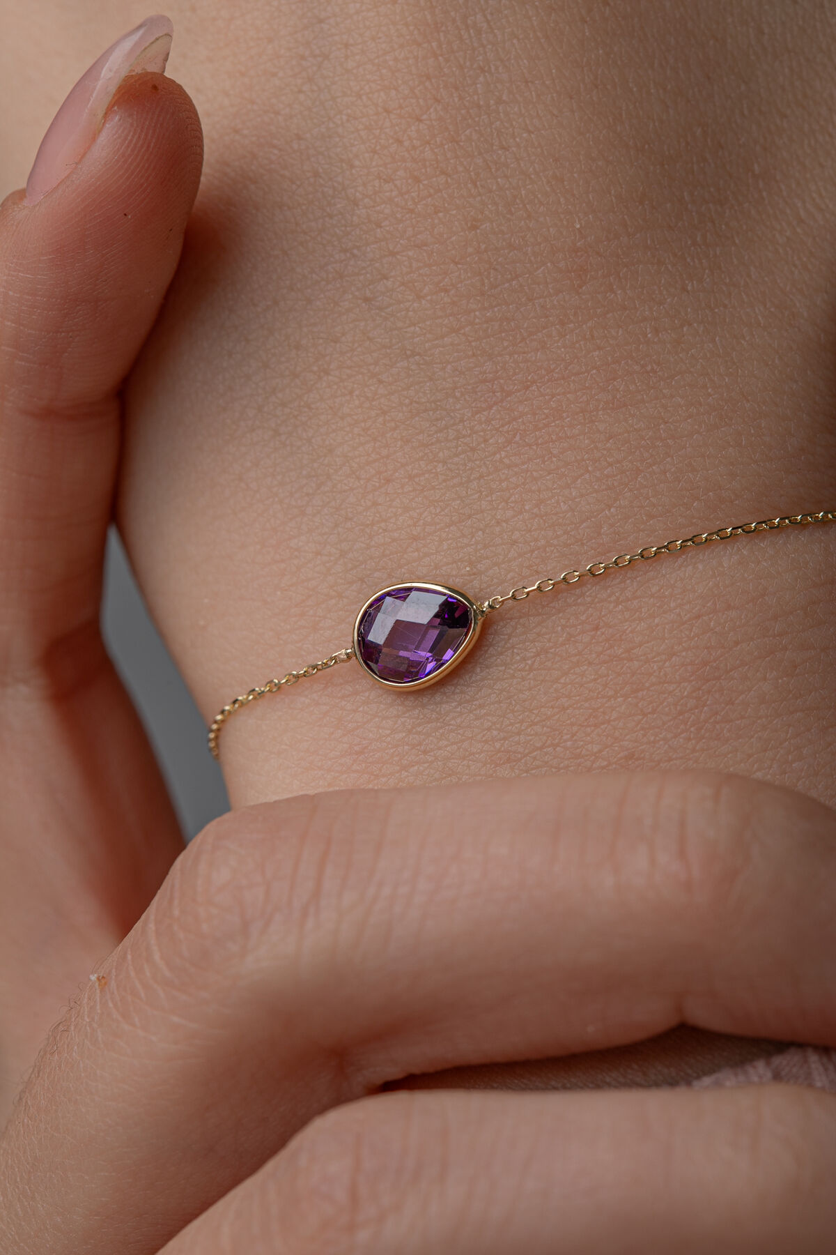 Kolyecik 14 Ayar Altın Mor Damla Taş Bileklik