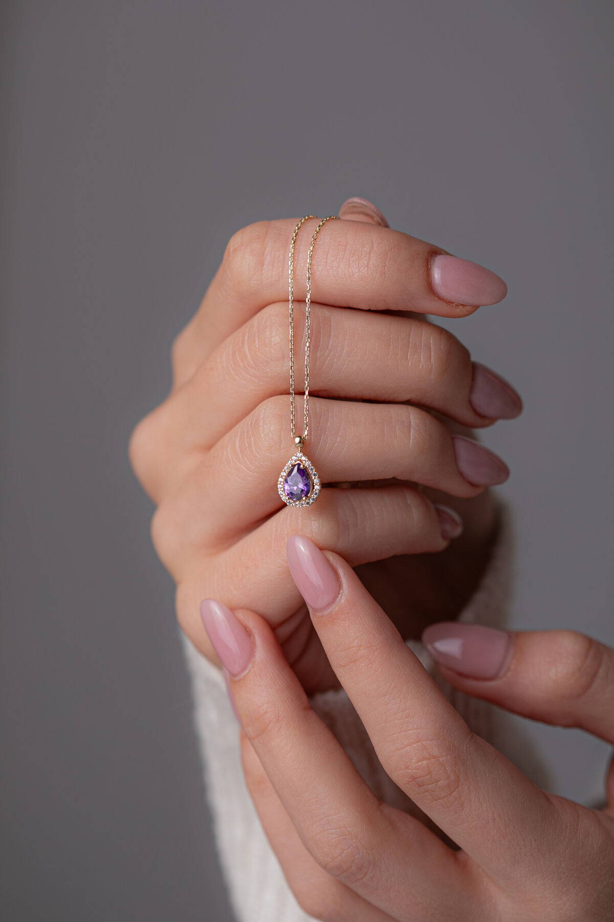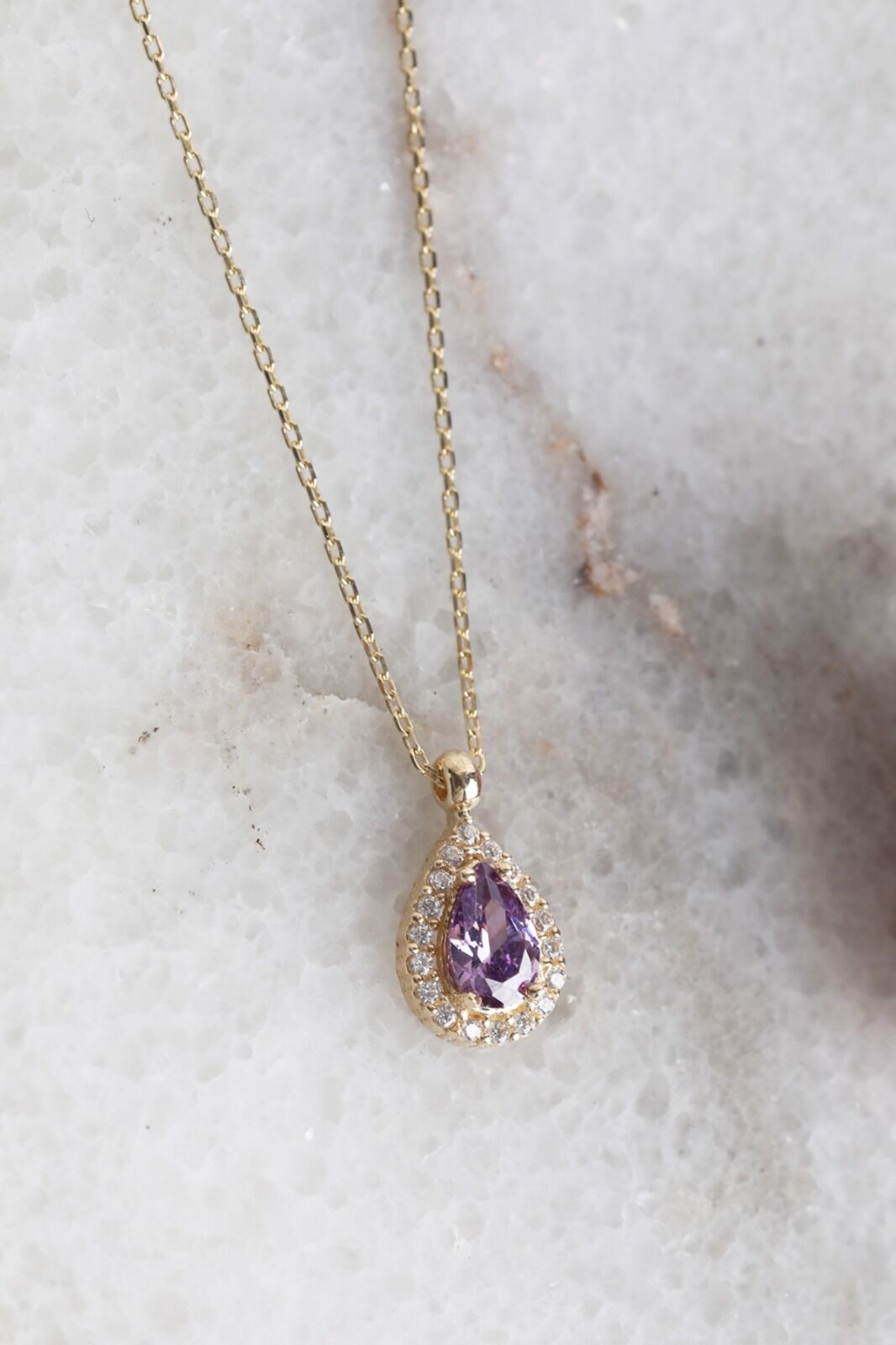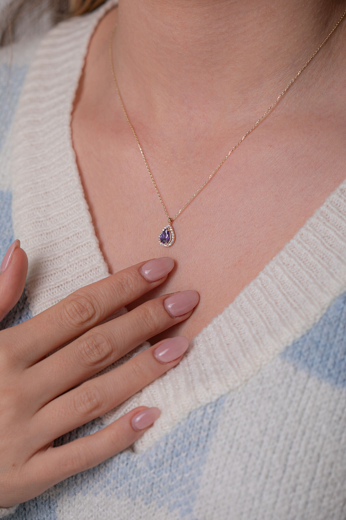 Kolyecik 14 Ayar Altın Mor Taş Kolye