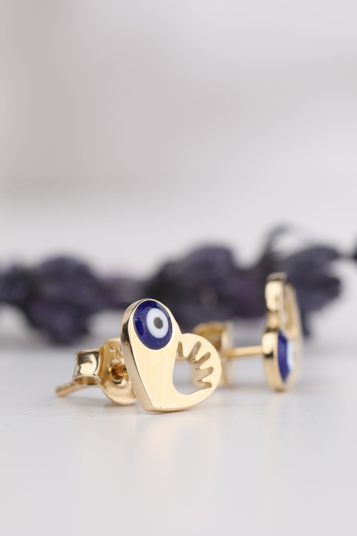 Kolyecik 14 Ayar Altın Nazarlı Bebek El İzi Küpe