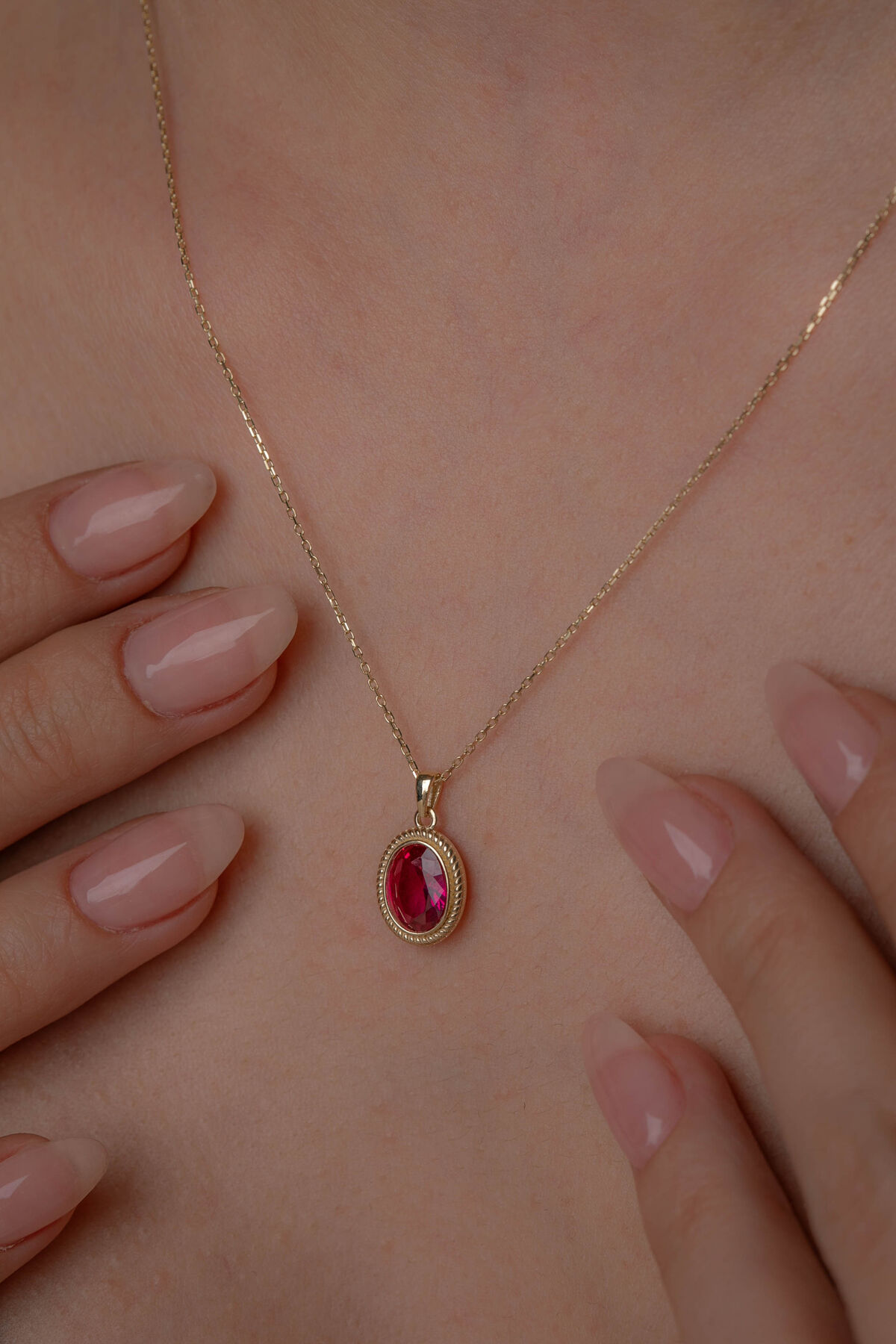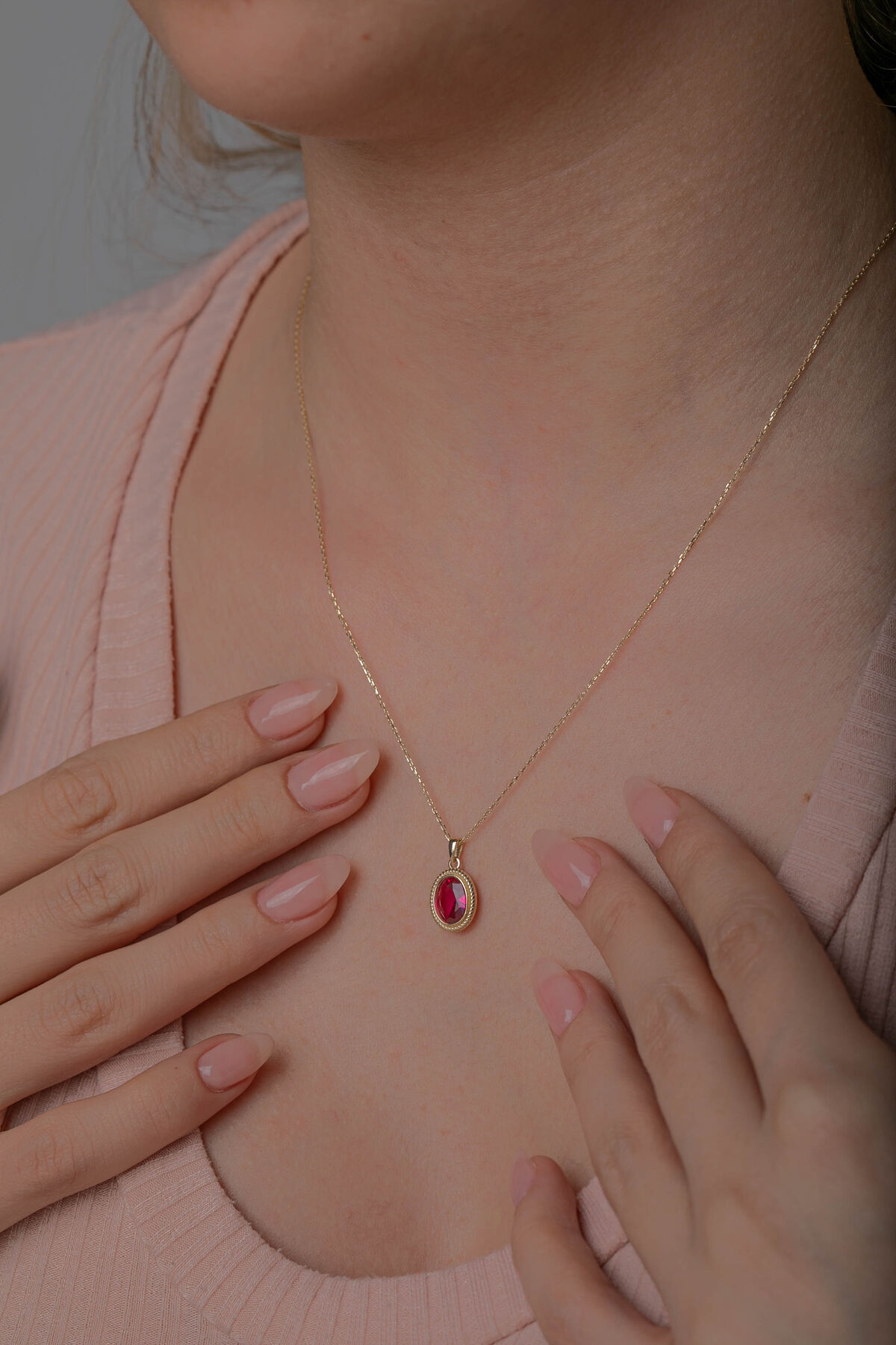 Kolyecik 14 Ayar Altın Oval Taşlı Kolye