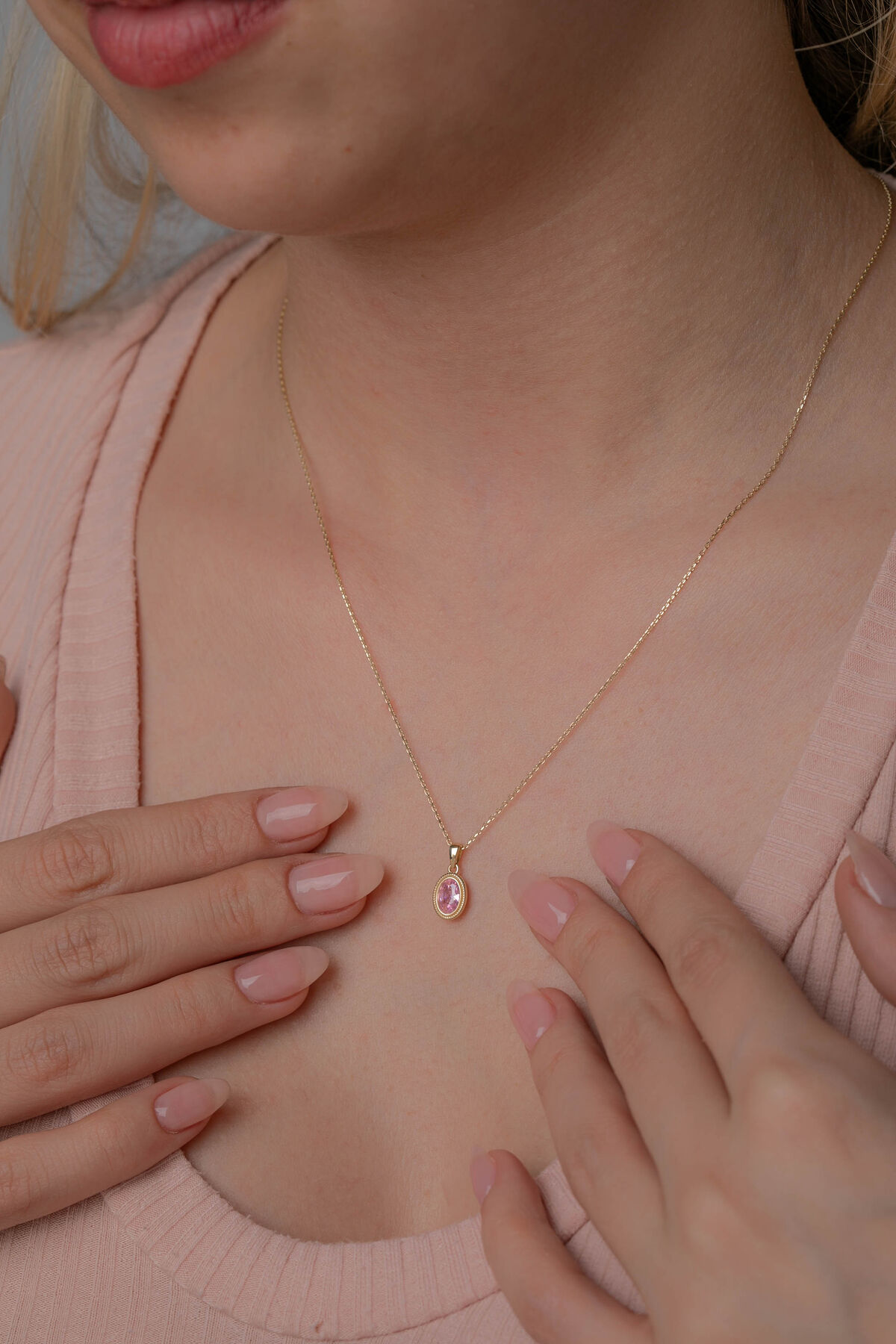 Kolyecik 14 Ayar Altın Oval Taşlı Kolye