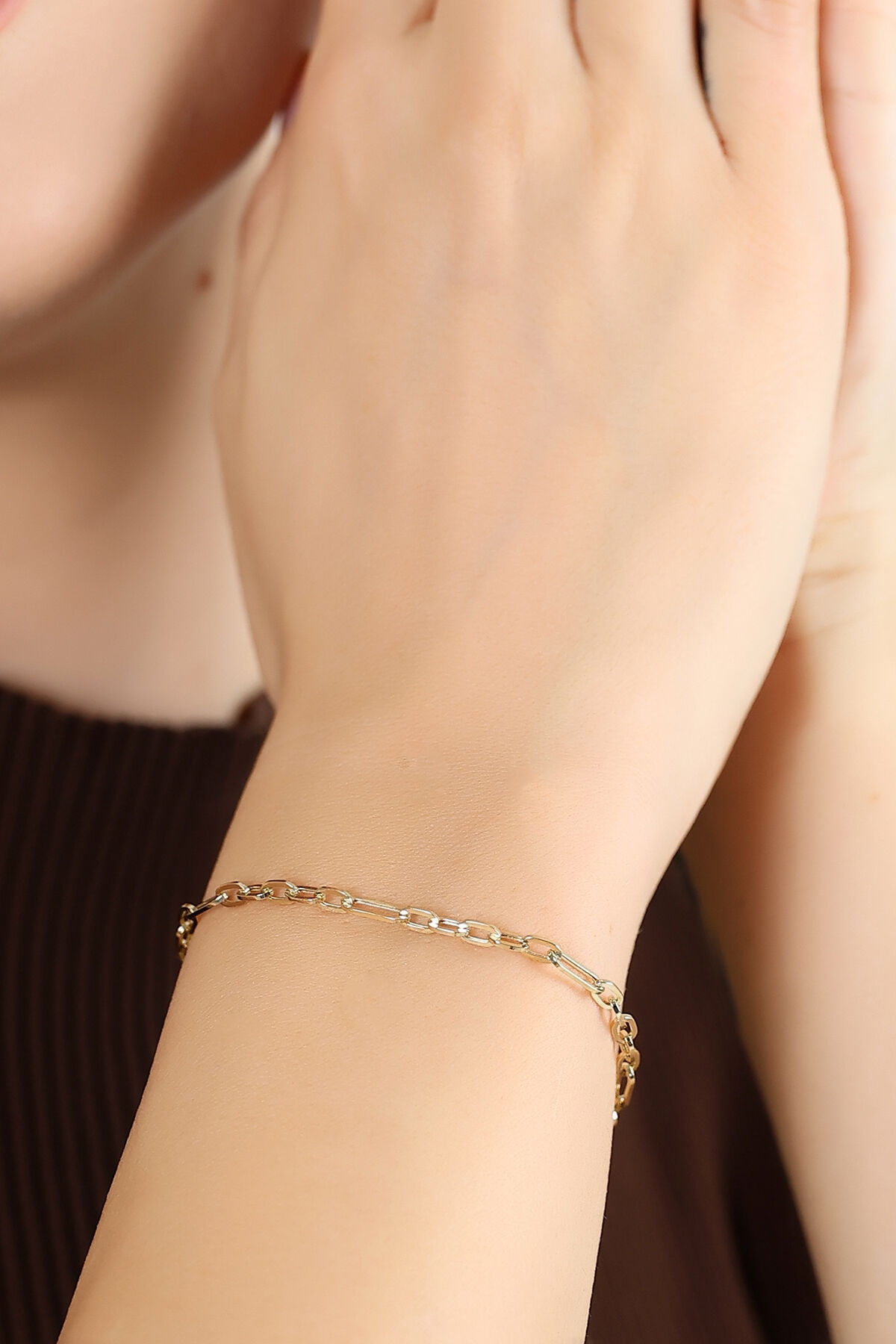 Kolyecik’in zarif işçiliğiyle hazırlanan 14 Ayar Altın Oval Zincir Bileklik, 1,76 gram ağırlığıyla bileğinizde hafif ama şık bir görünüm sunar. %100 14 Ayar Altın kullanılarak el emeğiyle üretilmiş bu özel tasarım, oval zincir formunun modern ve zarif çizgileriyle dikkat çeker. Günlük kullanımda sade bir şıklık kazandırırken, özel günlerde de stilinizi tamamlayan değerli bir aksesuar haline gelir. Parlak altın dokusu sayesinde zamansız bir şıklık sunan bu bileklik, uzun yıllar güvenle kullanılabilir. 18,5 cm zincir uzunluğu ve 2 cm uzatma halkası sayesinde toplamda 20,5 cm’ye kadar ayarlanabilir, böylece bileğinize mükemmel uyum sağlar. El yapımı olması nedeniyle her parça benzersizdir. Siparişleriniz özenle hazırlanarak, sigortalı kargo ve orijinallik sertifikasıyla en geç 2 iş günü içinde güvenle size ulaştırılır.