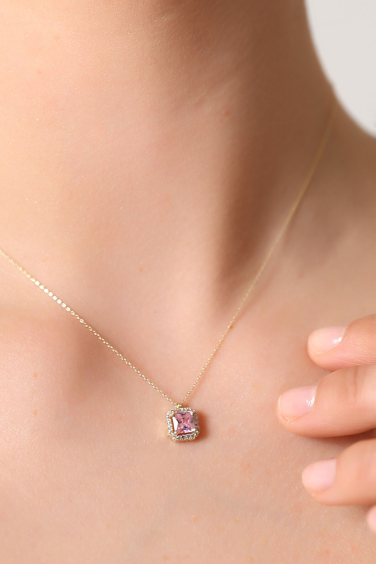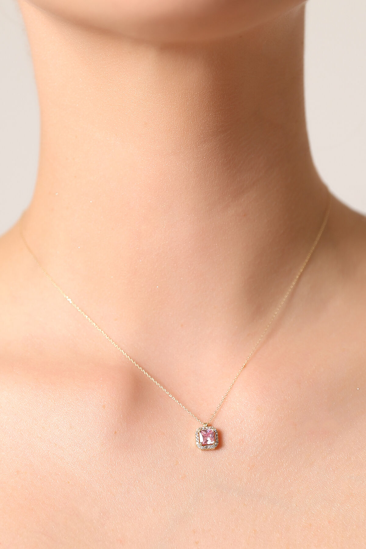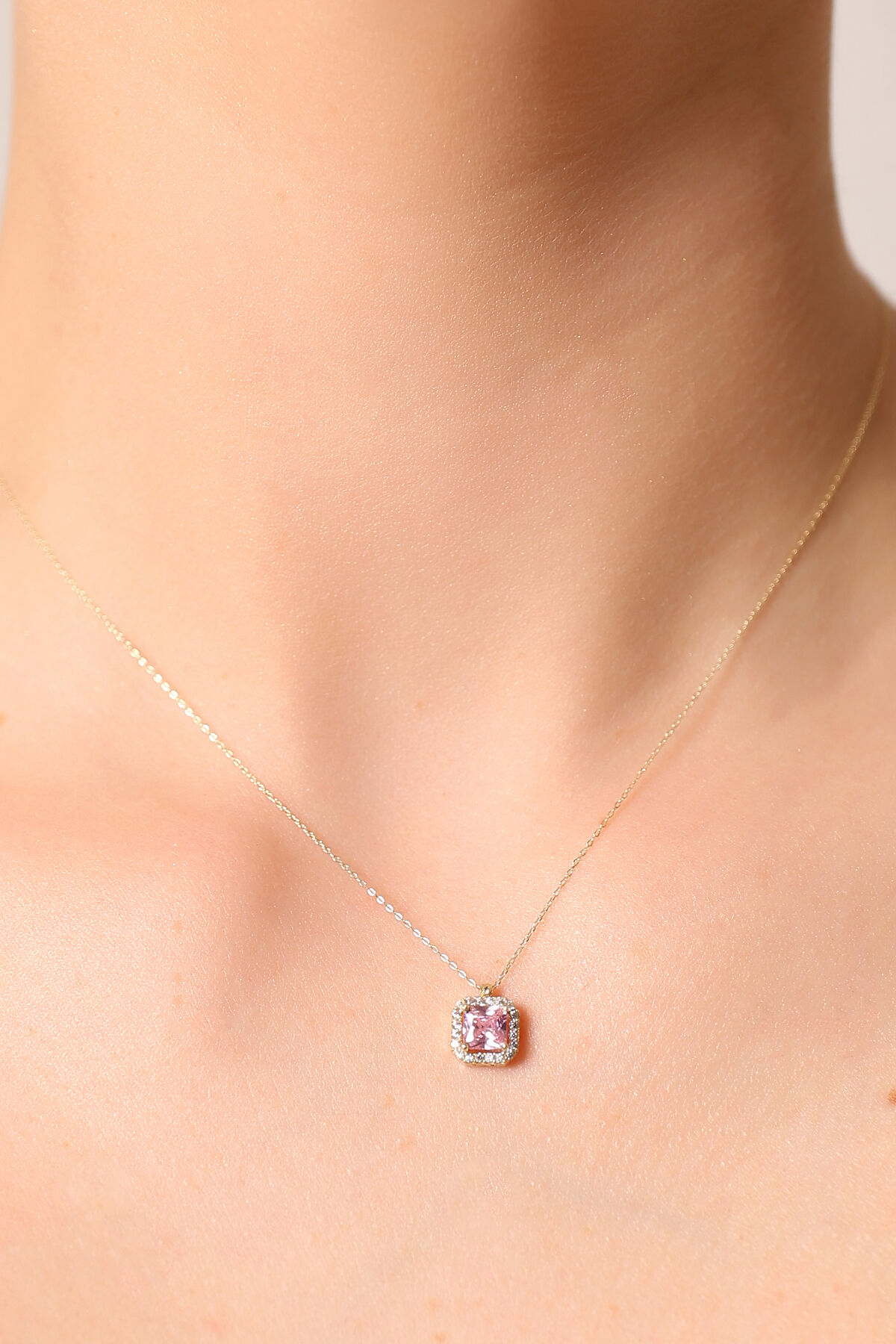 Zarif pembe tonları ve modern baget kesimiyle bu kolye, hem romantik hem de şık bir aksesuar arayanlar için ideal bir seçimdir.