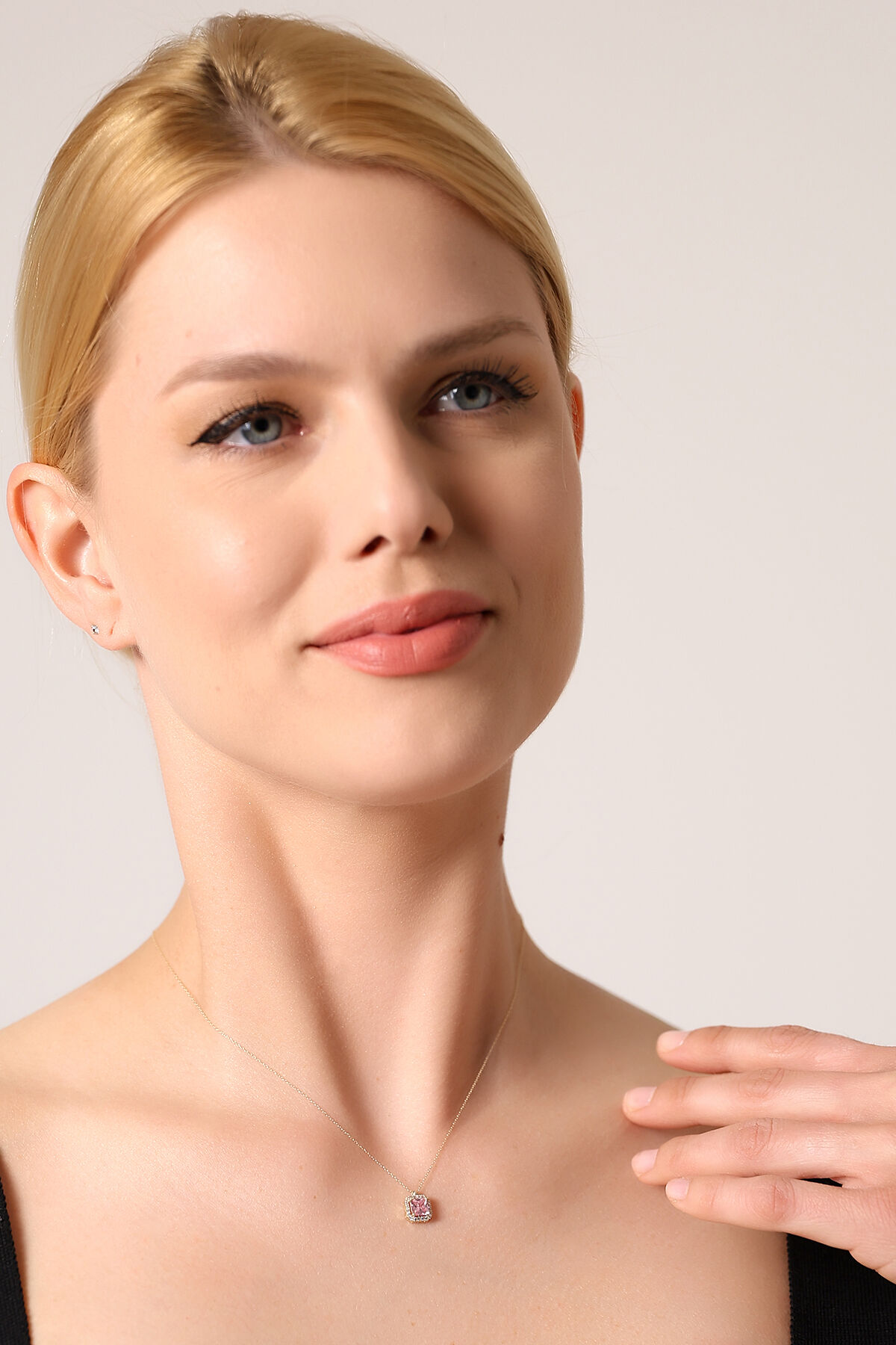 Pembe baget taşın yumuşak ve çekici tonları, altının sıcak rengiyle birleşerek dikkat çekici ve feminen bir görünüm oluşturur.