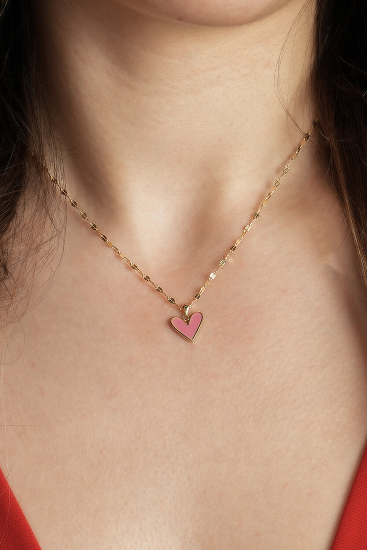 Kolyecik 14 Ayar Altın Pembe Kalp Kolye