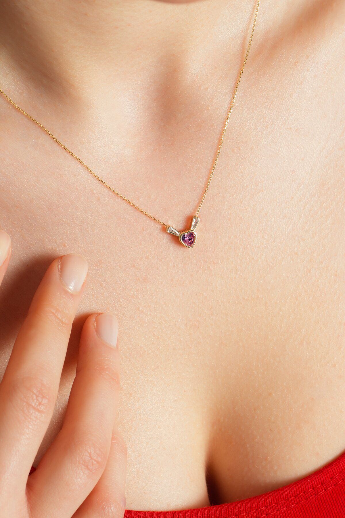 Kolyecik 14 Ayar Altın Pembe Kalp Kolye