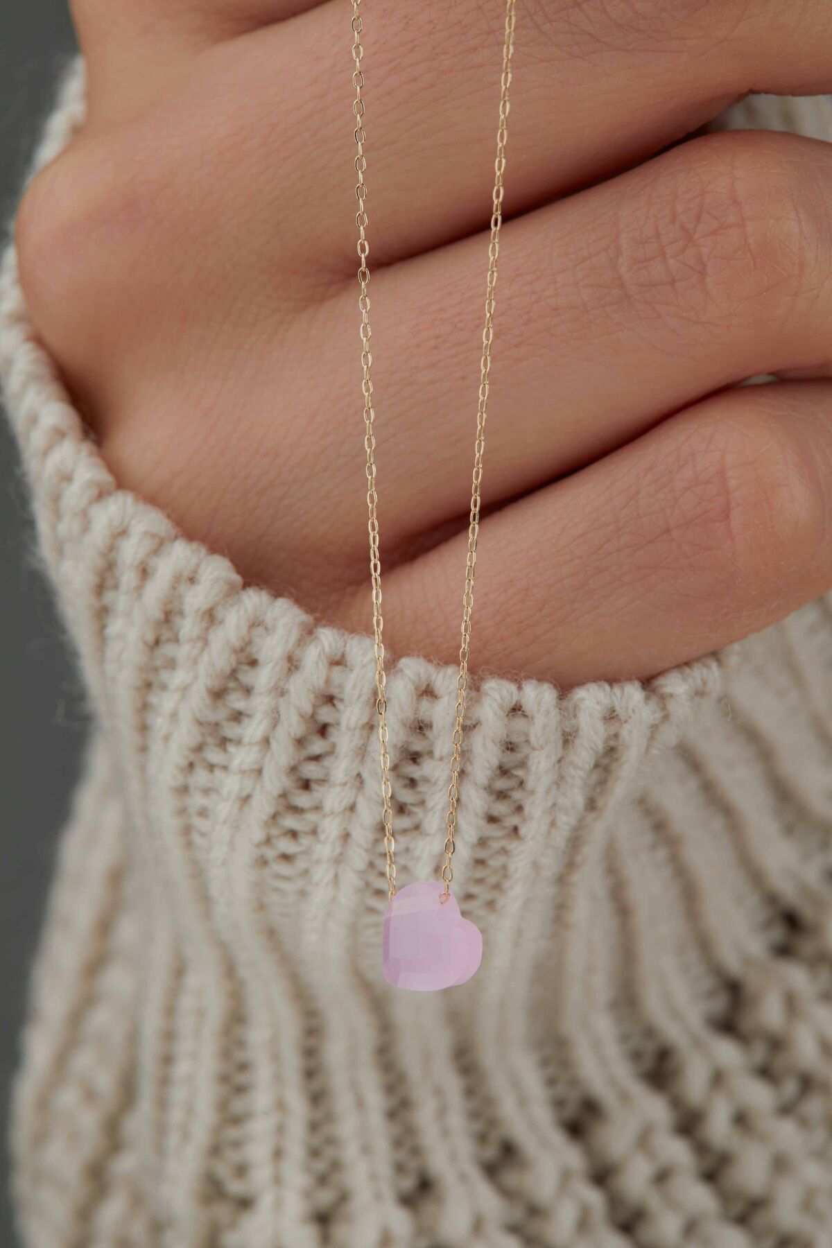 Kolyecik 14 Ayar Altın Pembe Kalp Kolye