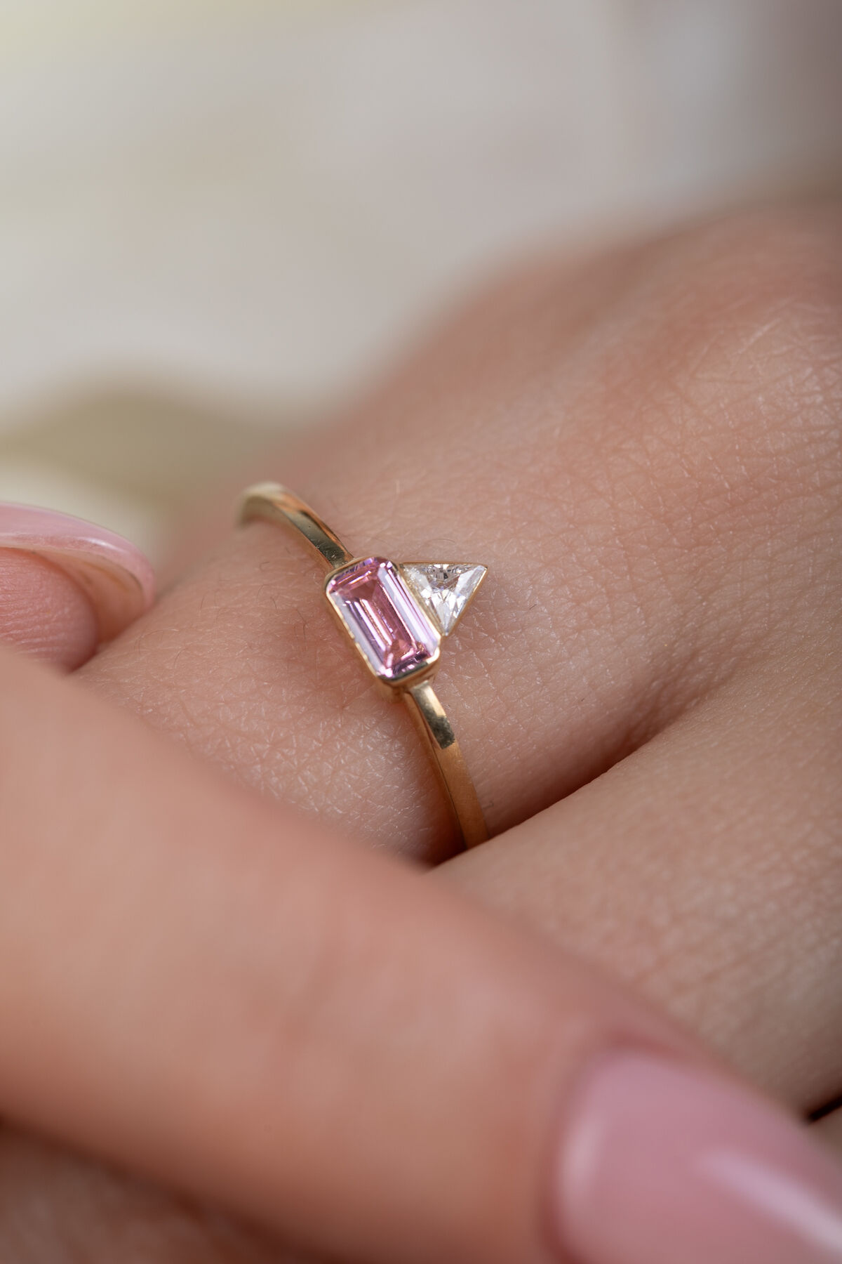 Kolyecik 14 Ayar Altın Pembe Taşlı Yüzük