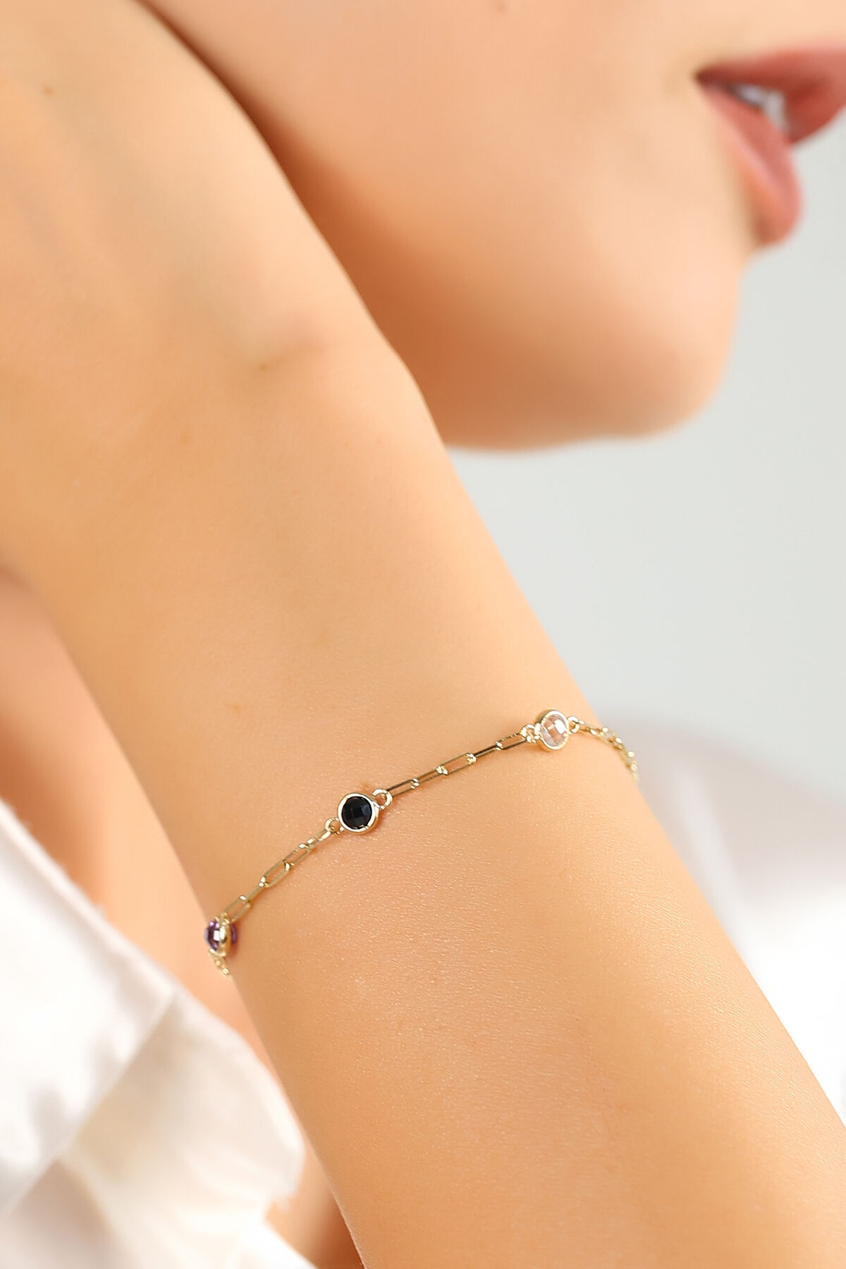 Kolyecik’in zarif işçiliğiyle tasarlanan 14 Ayar Altın Renkli Taş Bileklik, 2,13 gram ağırlığıyla bileğinizde hafif ama göz alıcı bir şıklık sunar. %100 14 Ayar Altın kullanılarak üretilen bu bileklik, renkli taşların ışıltısıyla modern bir dokunuş katar. 18,5 cm zincir uzunluğuna ek olarak 2 cm uzatma zinciri sayesinde toplamda 20,5 cm’ye kadar ayarlanabilir ve bileğinize konforlu bir şekilde uyum sağlar. Günlük kullanımda minimal bir zarafet sunarken, özel günlerde şıklığınızı tamamlayan göz kamaştırıcı bir aksesuara dönüşür. El yapımı olması nedeniyle her bileklik eşsizdir. Siparişleriniz özenle hazırlanarak sigortalı kargo ve orijinallik sertifikasıyla en geç 2 iş günü içinde size ulaştırılır.