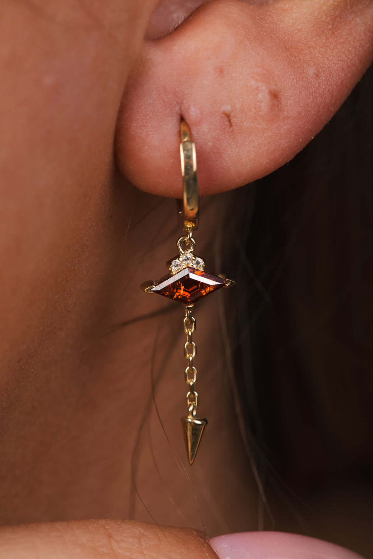 Kolyecik 14 Ayar Altın Sallantılı Kırmızı Taş Küpe