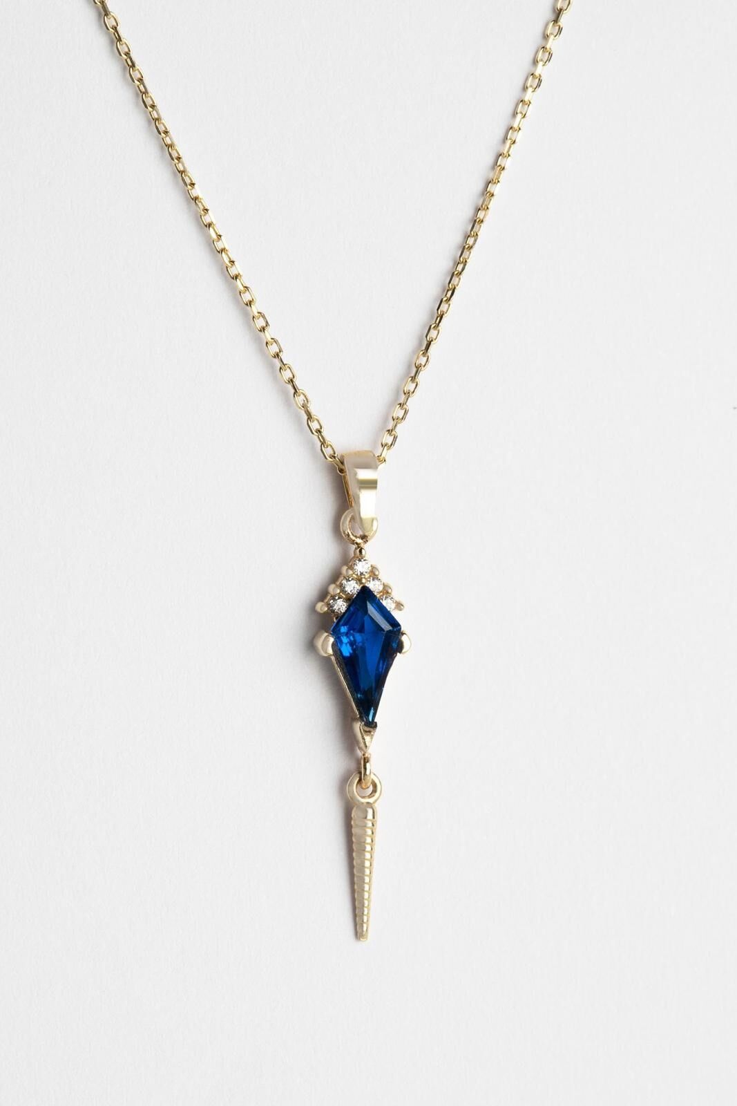 Kolyecik 14 Ayar Altın Sallantılı Lacivert Taş Kolye