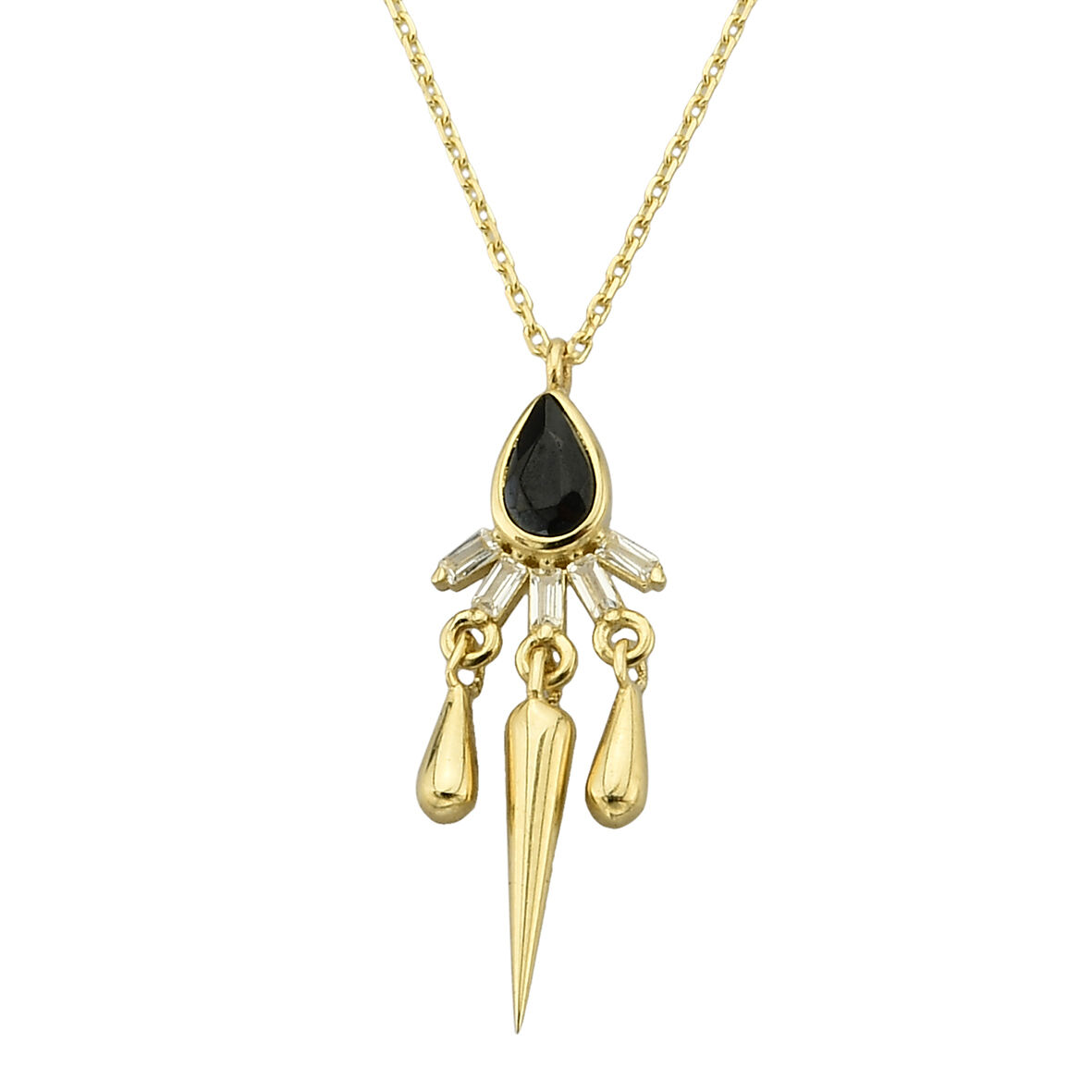 Kolyecik 14 Ayar Altın Sallantılı Siyah Taş Kolye