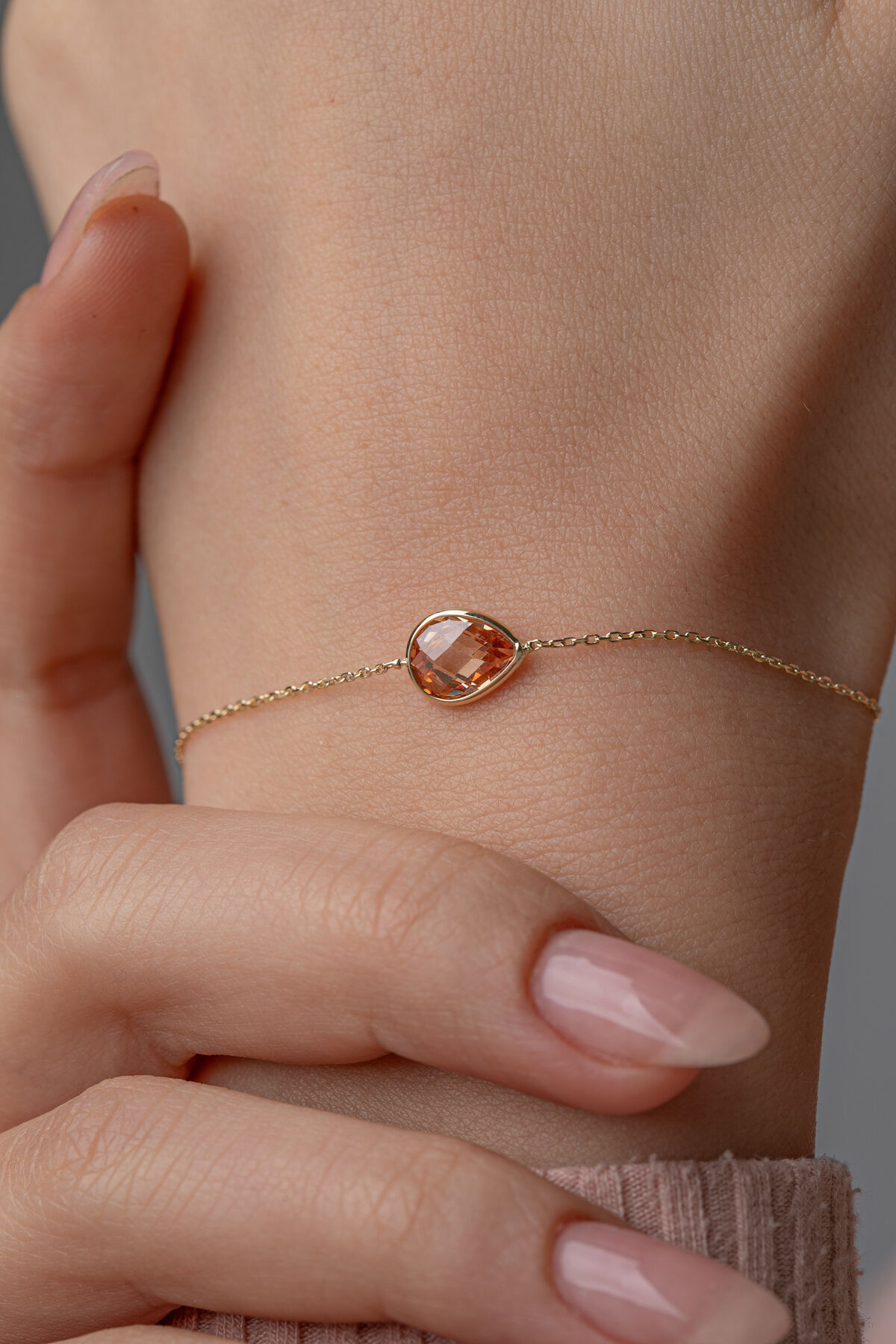 Kolyecik 14 Ayar Altın Şampanya Damla Taş Bileklik